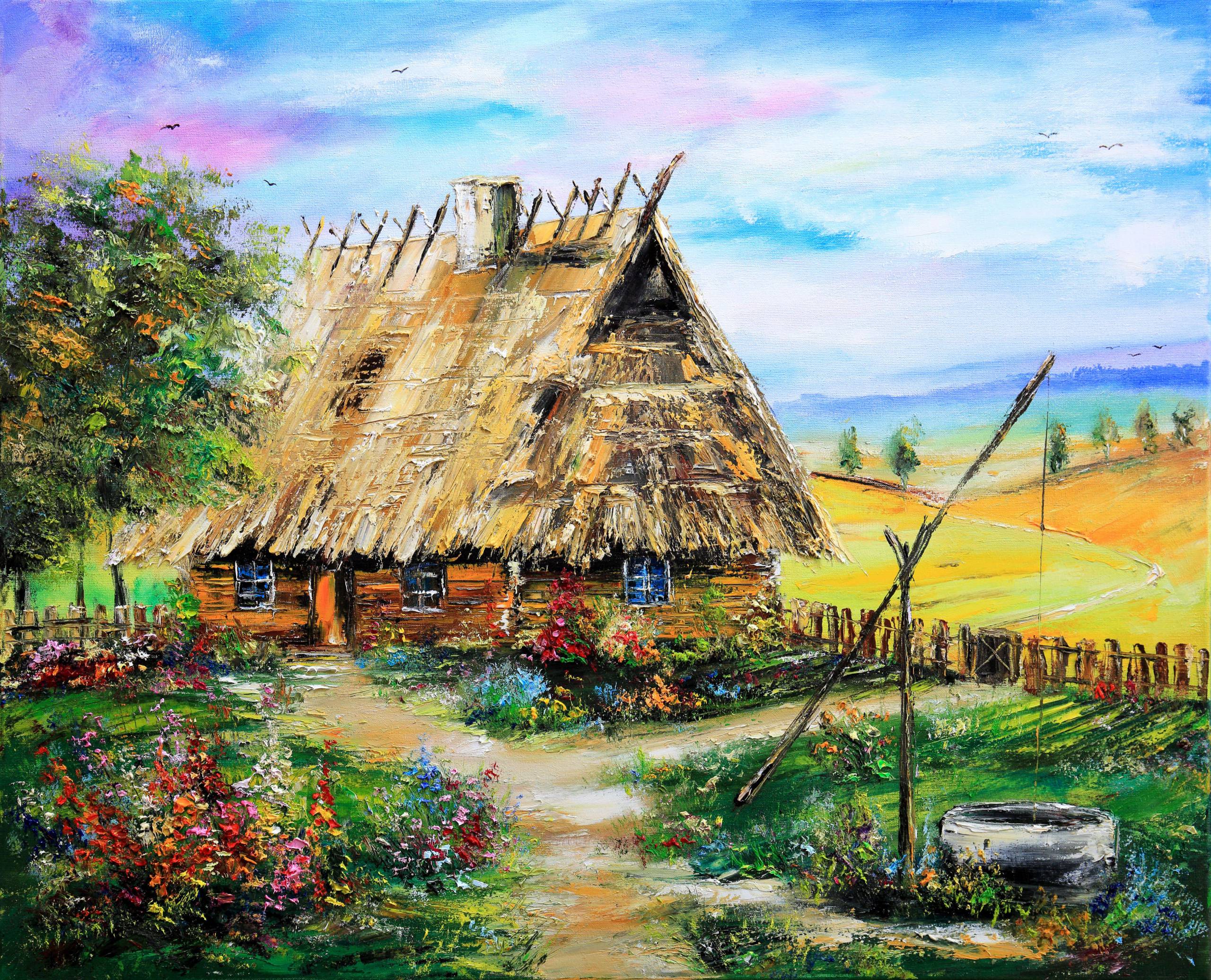 WIEJSKIE PODWÓRZE - obraz olejny 50x60 cm