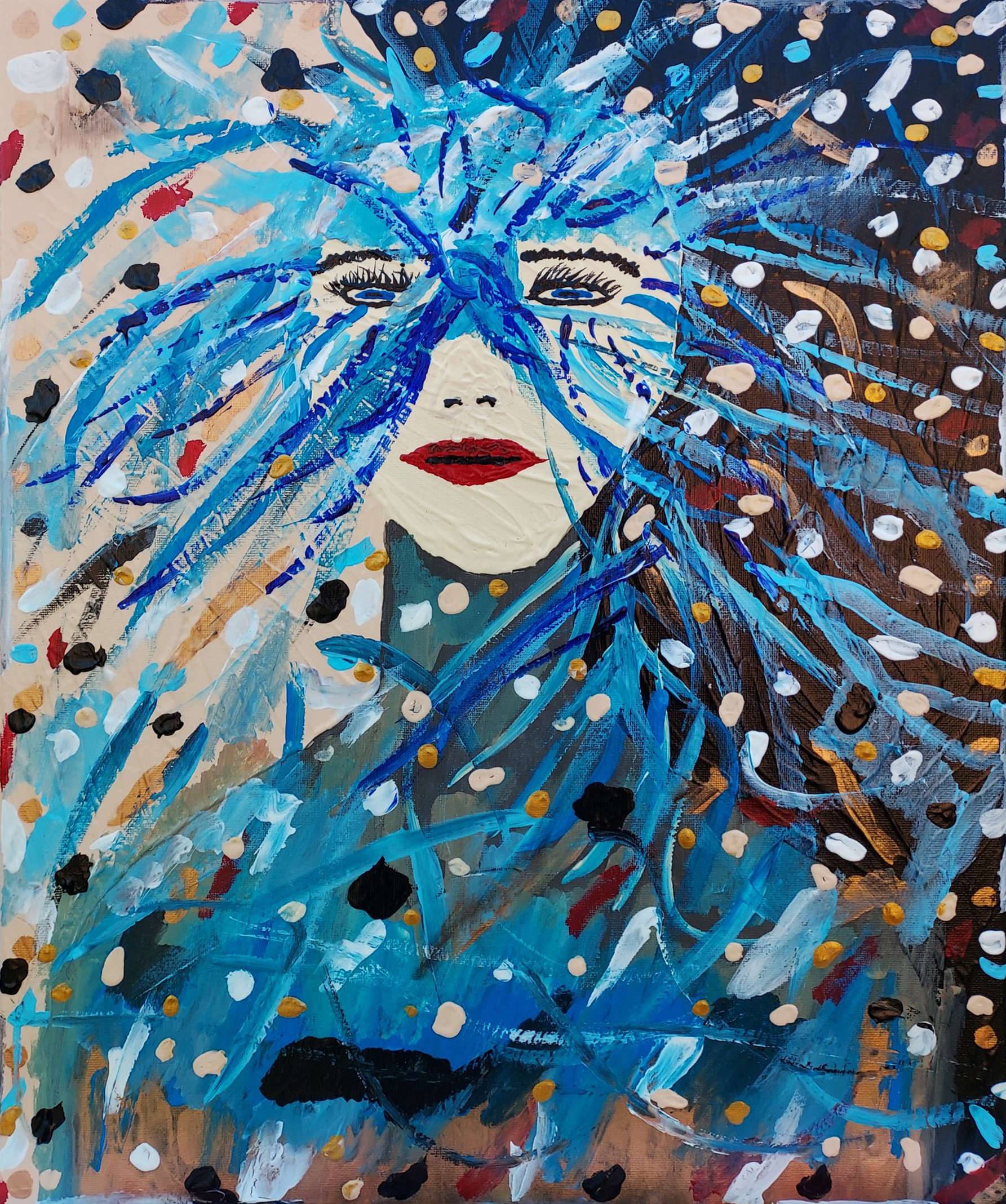 Obraz ręcznie malowany farbami akrylowymi, zabezpieczony werniksem. Kolorystyka i dobrane kolory obrazu idealnie spasują do pokoju dziennego lub salonu.