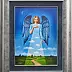 Ten obraz emanuje magicznym spokojem, jakby anioł zstąpił z nieba, by przekazać jakąś tajemnicę. Dominują tu błękity i zielenie, które łączą się harmonijnie, tworząc atmosferę sielskiego snu. Anioł ma złociste włosy i delikatną twarz, ubrany jest w niebieską szatę, jakby utkane z chmur. Skrzydła lśnią w odcieniach granatu i srebra, dodając mu eterycznego wyglądu. Światło emanowane przez anioła tworzy na ziemi świetlistą drogę, zapraszając do spaceru po pagórkowatym krajobrazie pełnym zieleni i czerwonych kwiatów. Styl obrazu nawiązuje do surrealizmu, łącząc realistyczne detale z fantastycznymi elementami. Technika jest precyzyjna, każdy detal jest starannie przemyślany. Takie połączenie realności z dreamlike wizją porywa odbiorcę w świat wyobraźni. Może budzić uczucie spokoju, ale i lekkiego zaskoczenia – skąd ta droga prowadzi, dokąd zmierza ten anioł? Dziwnie się patrzy, myśli mi wirują. Jakby ktoś zapraszał do odkrycia sekretu, ukrytego w zakamarkach tej drogi. I nagle poczułam chęć pójścia, odkrycia, co się kryje dalej. To takie calming uczucie, a zarazem intrygujące. Naprawdę uroczo i tajemniczo. Taki obraz można oglądać godzinami. Patrzę na tę kompozycję, zastanawiając się – co by na to powiedziało 7-letnie dziecko? Może: „Aniołek chce się bawić w chowanego”. To pełne uroku i inspiracji dzieło, które pozostawia widza z mnóstwem myśli i emocji.