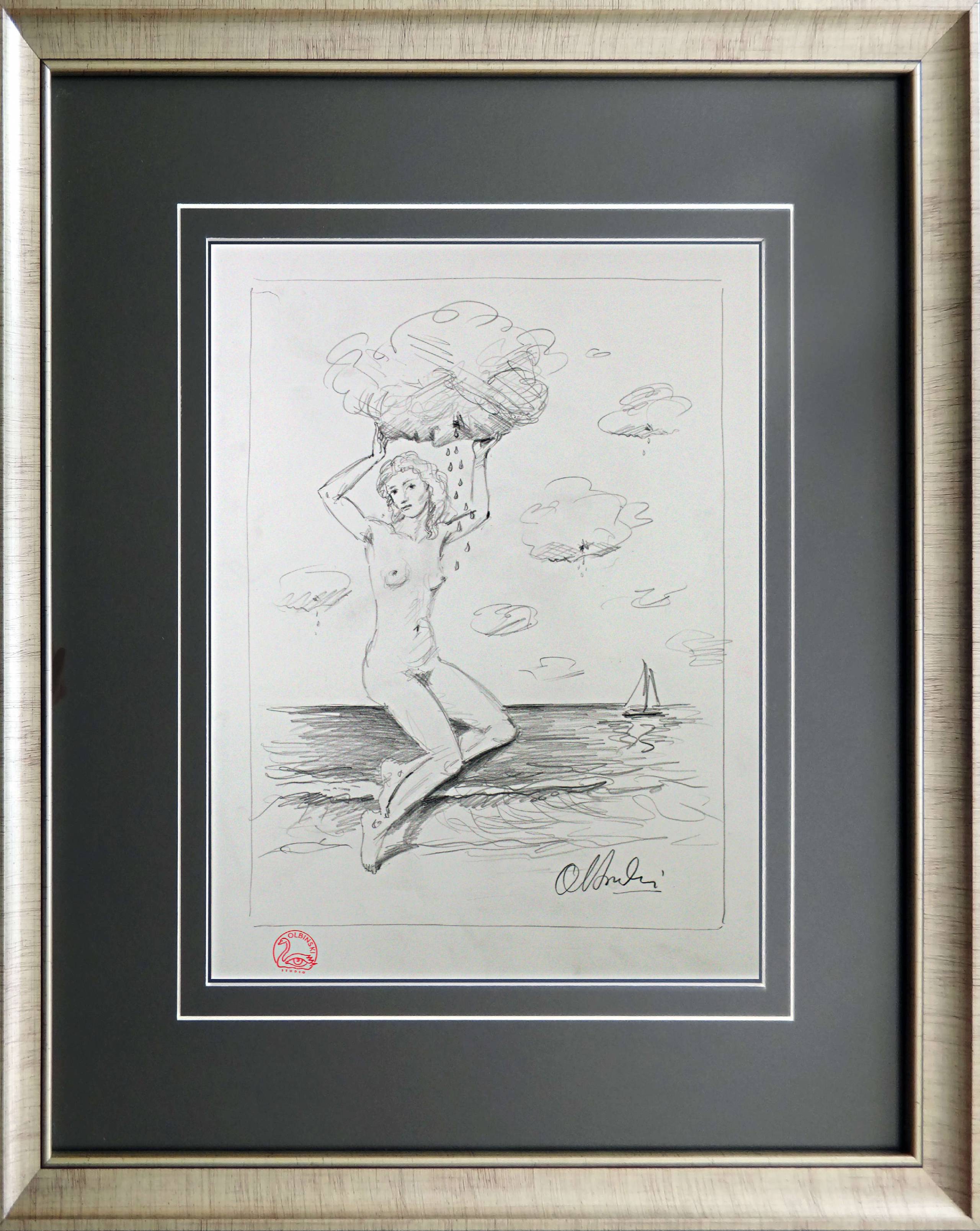 Obraz przyciąga wzrok delikatnymi, ale precyzyjnymi liniami, które układają się w subtelną kompozycję. Dominują tu odcienie szarości, a monochromatyczna paleta podkreśla prostotę i elegancję. Centralna postać, lekko nachylona, zdaje sie łączyć z otaczającymi ją chmurami, co nadaje scenie ulotny, niemalże magiczny charakter. Artysta bawił się perspektywą i proporcjami, co czyni obraz interesującym i wyjątkowym. Atmosfera wydobywająca się z dzieła jest spokojna, ale z nutą enigmatyczności. Czuję się jakbym znalazł się w nieznanej krainie, gdzie wszystko może się zdarzyć. Szkicowy styl rysunku wskazuje na swobodę twórczą, artysta zaznacza swoistość form przez użycie gładkich, płynnych linii. Interpretując ten obraz, można odnieść wrażenie, że przedstawia ono chwilowe wyzwolenie lub ucieczkę od codzienności. Ja czuję się jakbym chciał tam skoczyć, wzbić się ponad poziom ziemi i nerwy dnia powszedniego. W sercu obraz wywołuje nieodpartą chęć marzeń — "dream big". To sztuka, która zmusza do myślenia, lecz robi to z delikatnością. Mama, to jest obrazek, na którym pani tańczy na chmurze i deszcz kapie!