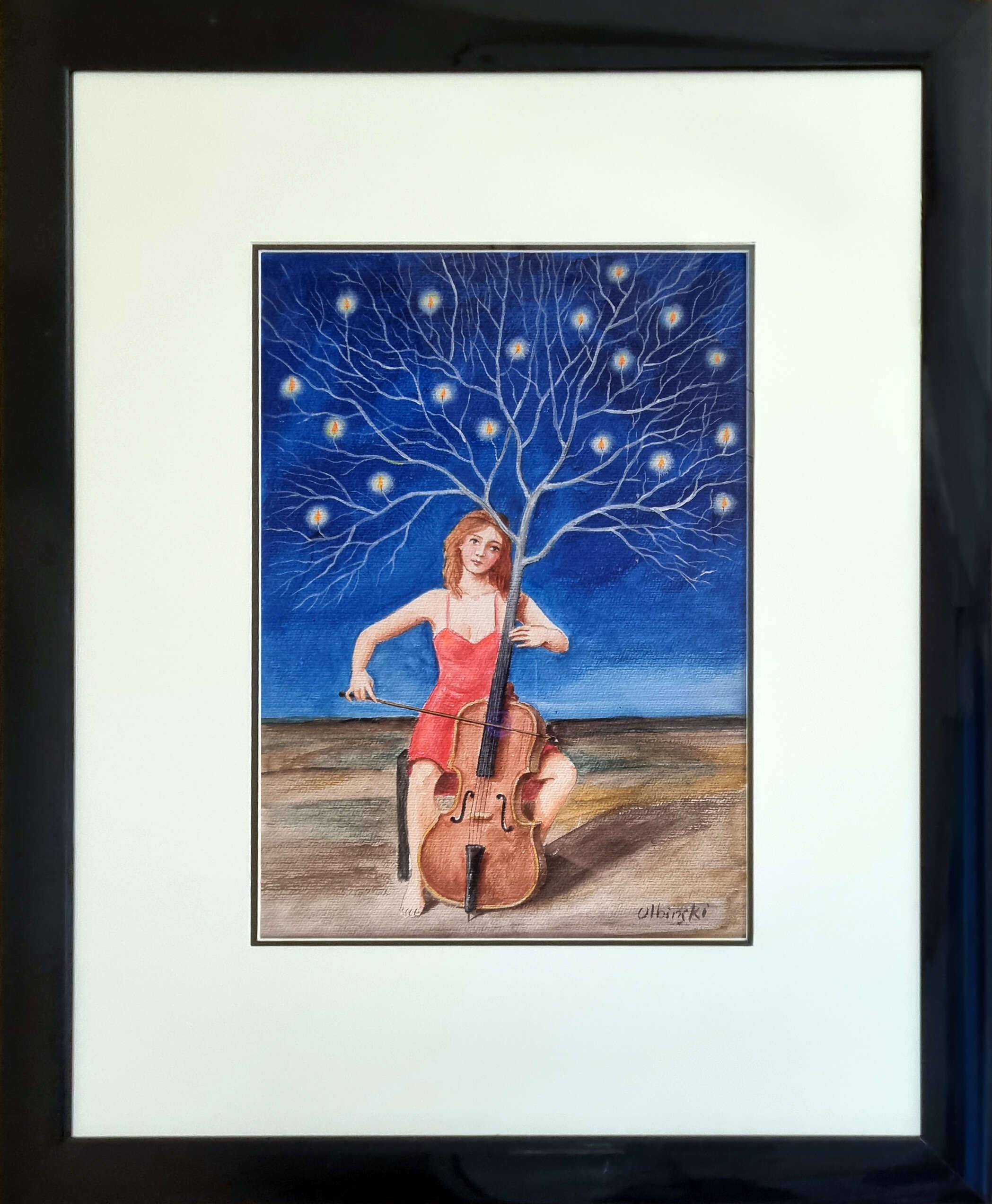 "bez tytuły (Wieczorny Koncert)", tempera na papierze, format 40x28 cm (w ramie około 70x60 cm)