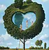 Obraz przedstawia surrealistyczną wizję, w której drzewo tworzy sercowaty kształt z liści nad lśniącym, niebieskim jeziorkiem. Całość jest otoczona zielenią, a w tle widać błękitne niebo i białe chmurki. Kompozycja jest niezwykle harmonijna, jakby każdy element miał swoje dokładnie wyznaczone miejsce. Główny motyw to postacie wchodzące do wody, co nadaje całości atmosferę spokoju i magii. Można poczuć się jak w bajce, gdzie rzeczywistość miesza się z fantazją. Artysta wykorzystał techniki realistycznego malarstwa, jednak z nutką magic realism. Połączenie precyzyjnie oddanych detali z fantastycznymi elementami dodaje obrazowi wyjątkowego uroku. Patrząc na to, można poczuć lekki uśmiech, bo kto by pomyślał, że można sobie zbudować "infinity pool" w koronach drzew. Dziecko może powiedzieć: "A ja kiedyś zbuduję takie drzewo w moim ogrodzie!" Kolory są żywe, a jednocześnie delikatne, tworząc lekkość i spokój, co daje wrażenie beztroski letniego dnia. Całość skłania do refleksji nad marzeniami i pragnieniami, które czasem wydają się nieosiągalne na pierwszy rzut oka. Wow, to jest naprawdę amazing. Obraz ma w sobie coś niewypowiedzianego, co sprawia, że można na niego patrzeć bez końca, doszukując się kolejnych znaczeń. Czasem warto przystanąć i pomarzyć w tak niecodziennym miejscu.