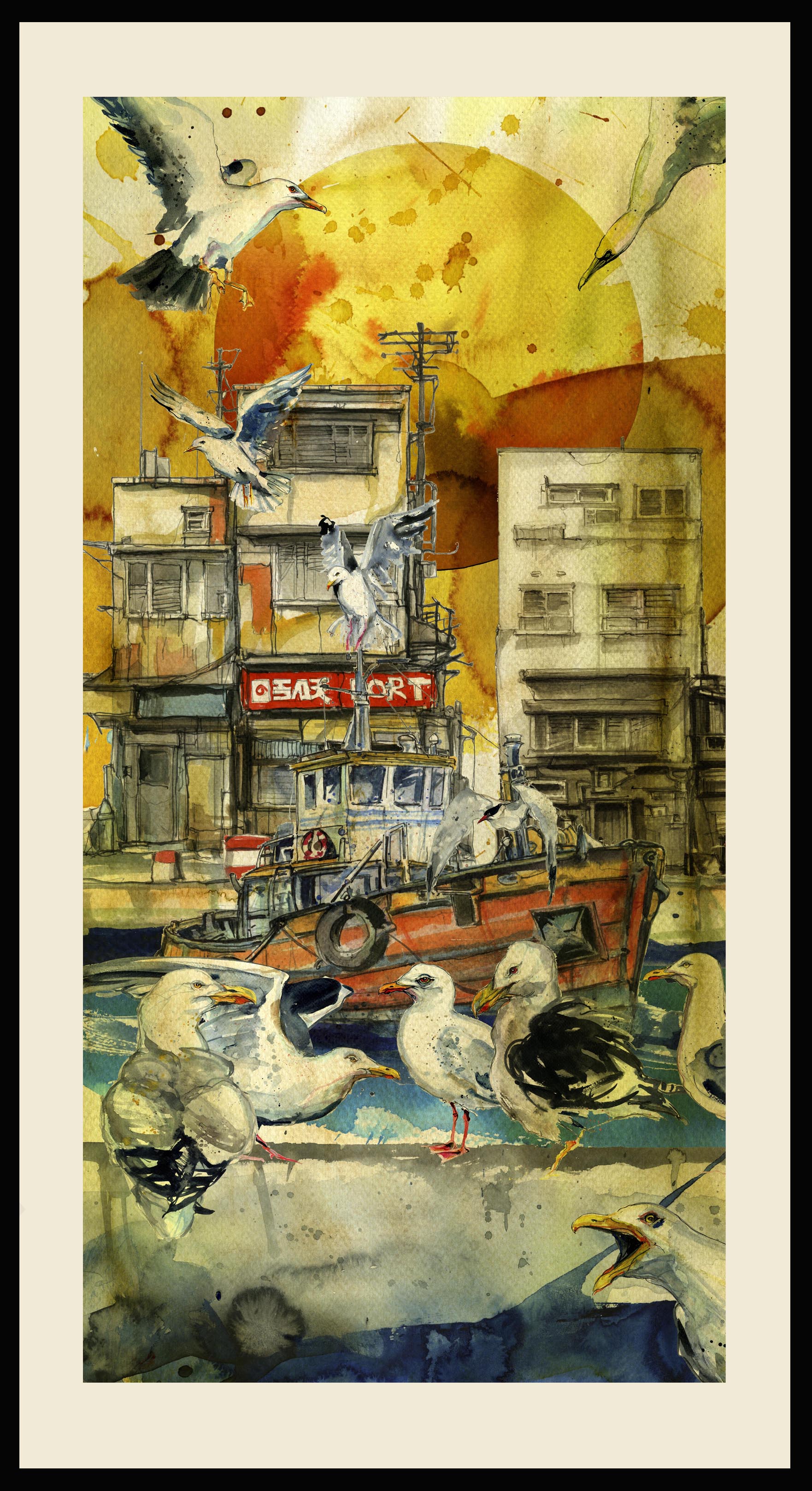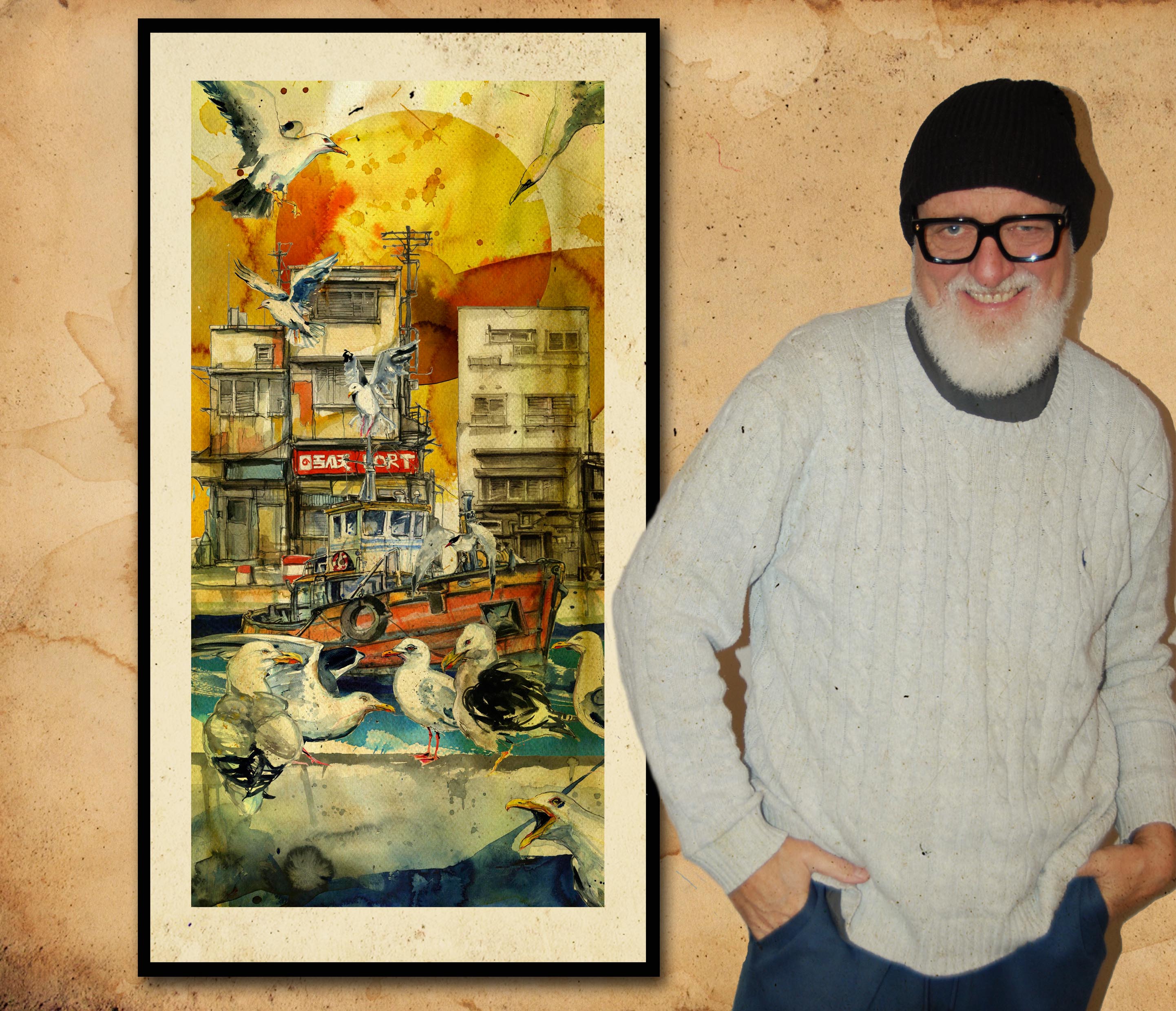 AKWARELA NA PAPIERZE,OPRAWIONA RAMA,SZKŁO,PASPARTU.