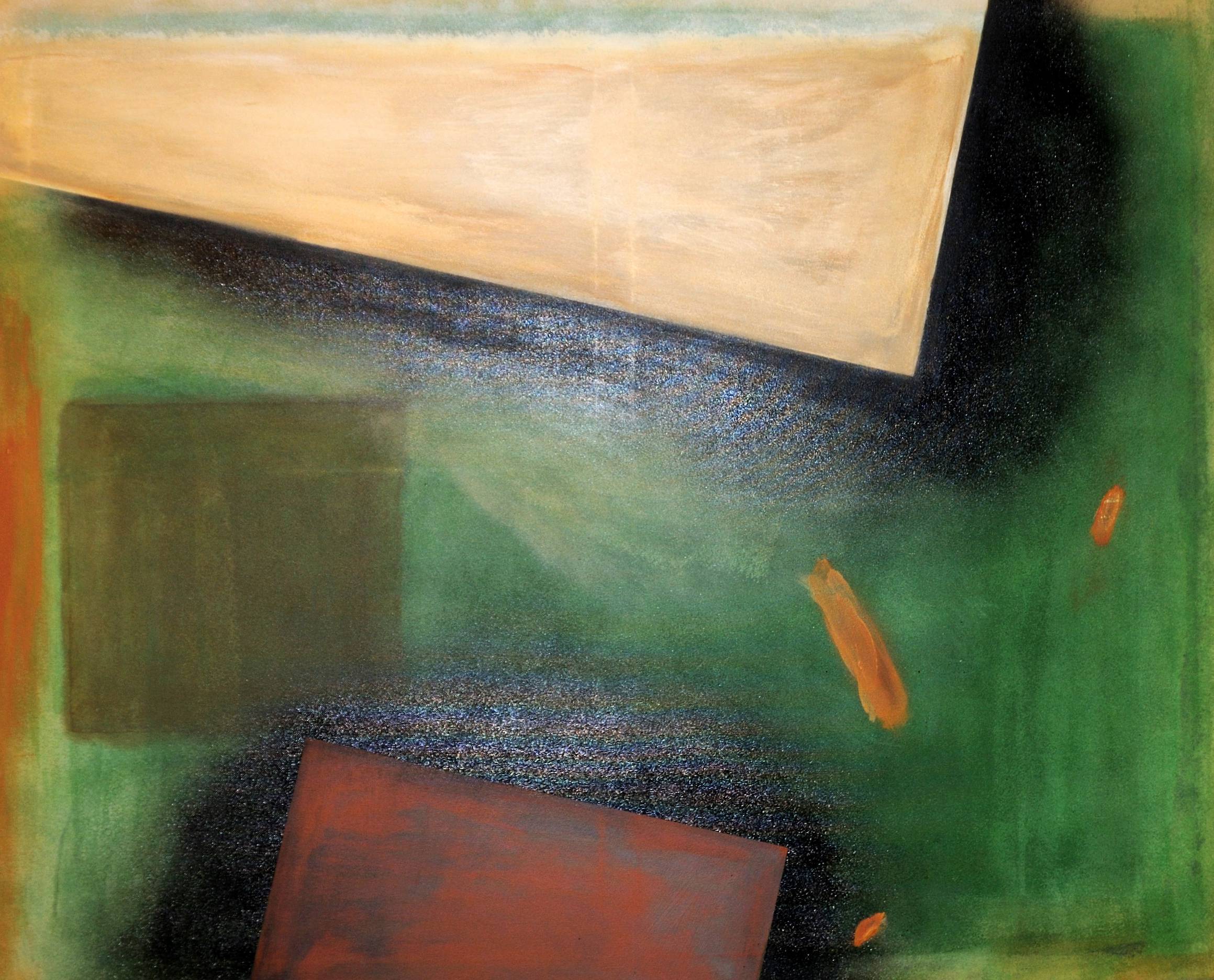 Obraz emanuje spokojem i tajemniczością dzięki harmonijnemu połączeniu zieleni z odrobiną pomarańczu i kremowym trójkątem, który przyciąga wzrok. Głębokie tło zdaje się inspirować do odkrywania ukrytych znaczeń. Cienie i półcienie tworzą iluzję ruchu, jakby każdy element miał swój własny rytm. Kompozycja, choć na pierwszy rzut oka chaotyczna, jest precyzyjnie zbalansowana, co dodaje jej dynamizmu. Artysta zastosował technikę szerokich pociągnięć pędzla, co nadaje pracy unikalnej faktury. Im dłużej się przyglądasz, tym więcej odkrywasz subtelnych przejść tonalnych, które wywołują poczucie głębi. Styl przypomina trochę dzieła współczesne, z lekkim nawiązaniem do abstrakcjonizmu. Patrząc na obraz, można poczuć mieszankę uspokojenia i niepewności. A może to po prostu moje myśli wirują w chaosie? Jeden element pozostaje niezmienny – fascynuje. Wow, jakbym był w innym świecie. Obraz może budzić ciekawość, tęsknotę za nieznanym albo nawet sprzeciw wobec nieuchwytności form. Właśnie to sprawia, że jest engaging – zachęca do refleksji i głębszego zadumy. Ale ja bym tak nie zrobił!