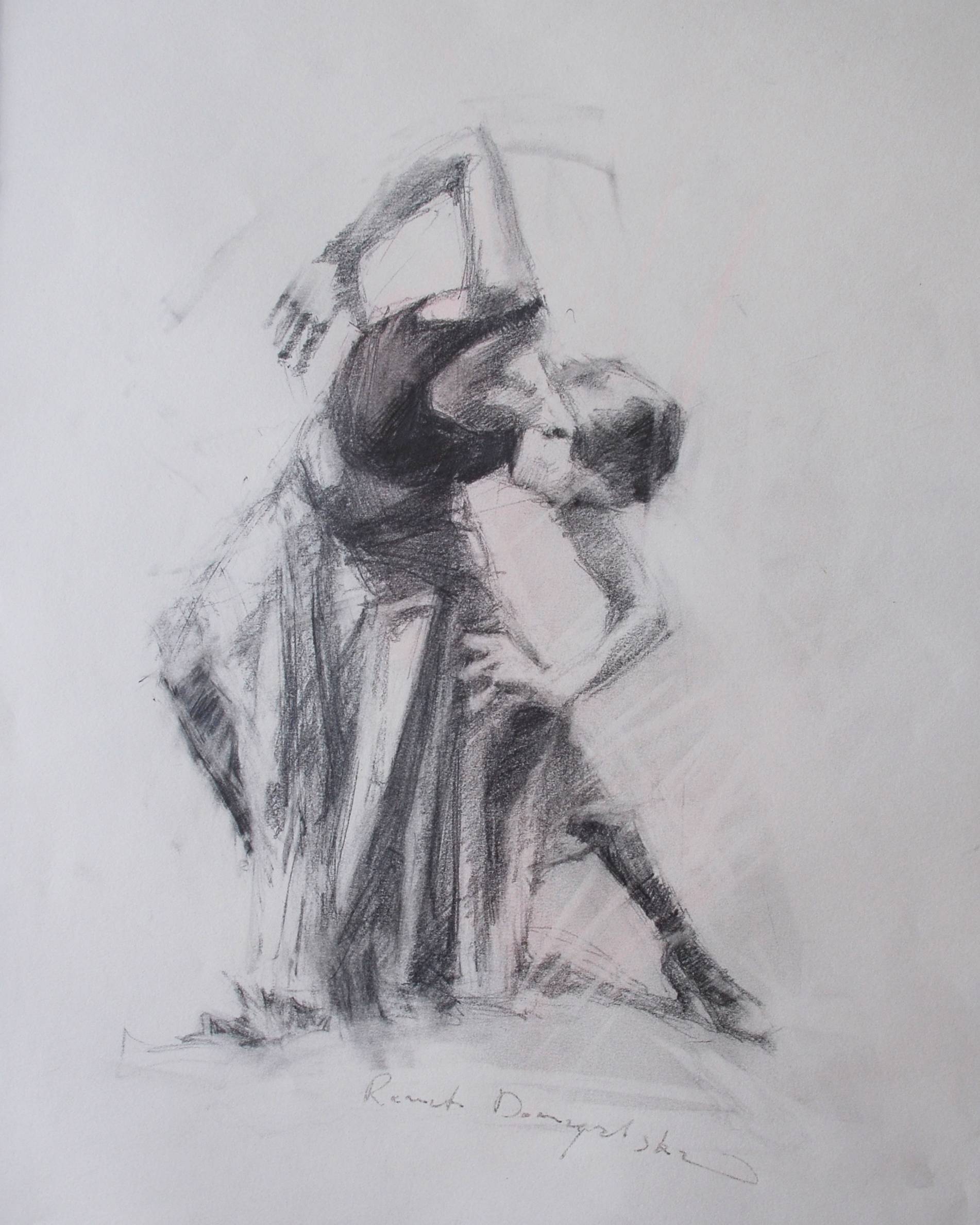 Tytuł - 'DUENDE' wersja szkicowa (nr. 11/2013). Autor - Renata Domagalska. Rok 2013. Technika - rysunek ołówkiem na miękkim papierze Fabriano. Format A3. Rysunek wymaga oprawy.