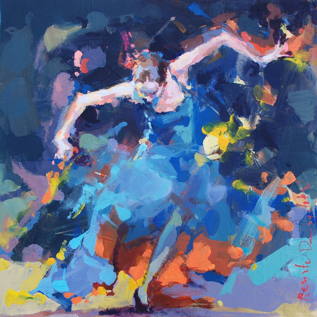 Tytuł - NIEBIESKI HURAGAN (nr. 33/2013). Autor - Renata Domagalska. Rok 2013. Technika - akryl na płótnie, werniks satynowy. Format 30x30 cm.