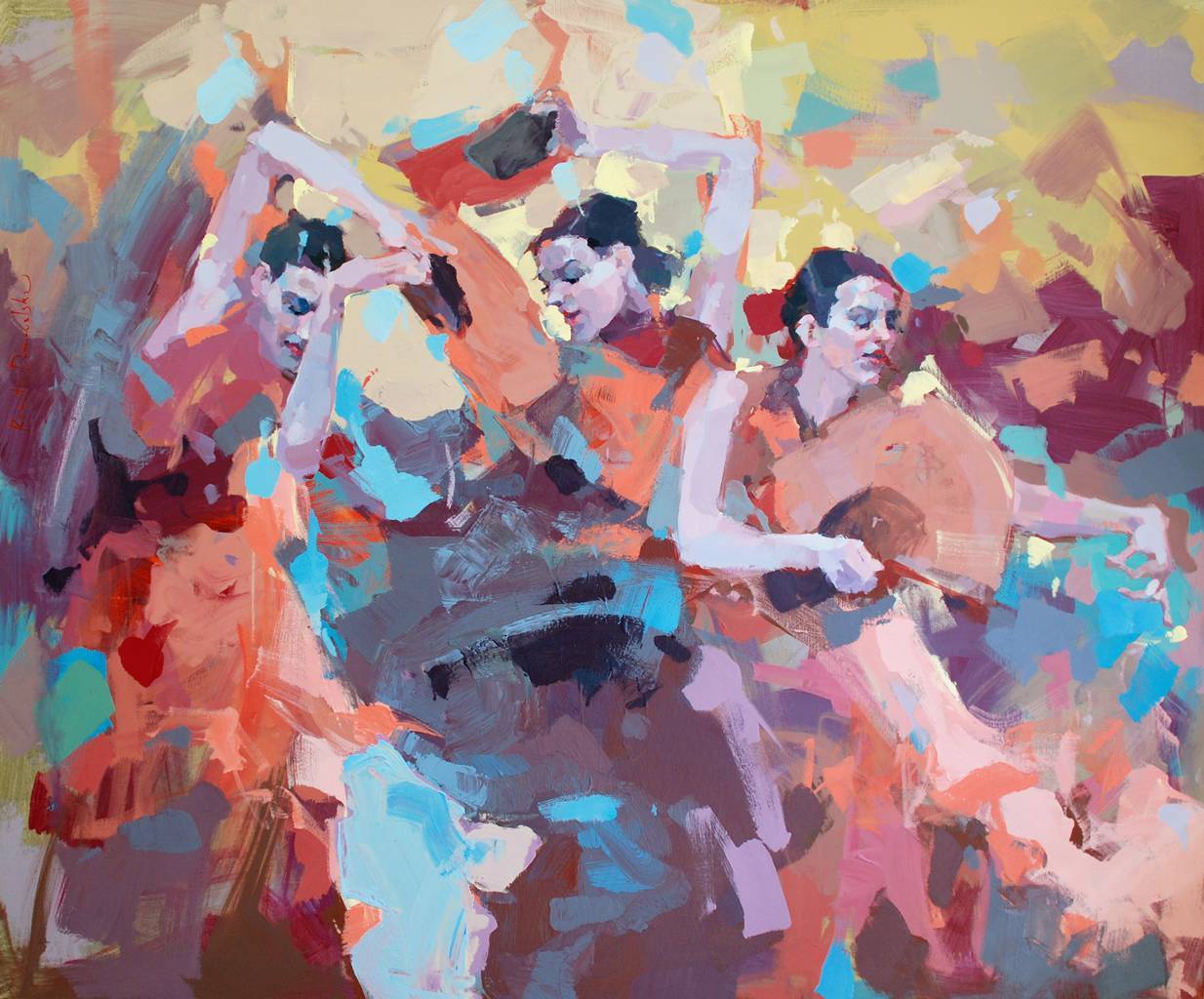 Tytuł - Westerly wind (nr. 33/2014). Autor - Renata Domagalska. Rok powstania obrazu 2014. Technika - akryl na płótnie, werniks satynowy. Format 100x120 cm. * Obraz na wystawie BREATHING ROOMS Galeria Tarraco - Tarragona (Hiszpania 2014).