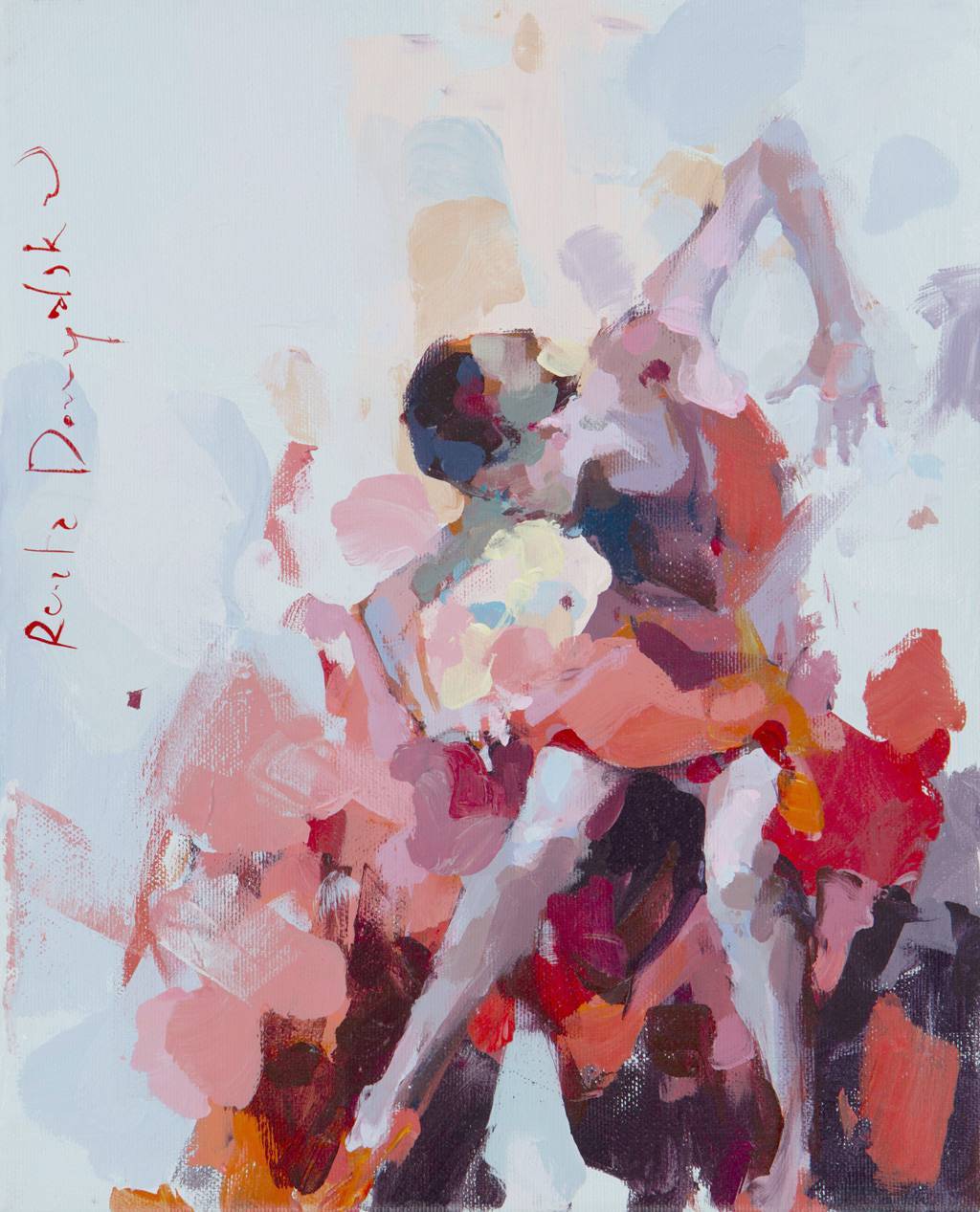 Tytuł - Sekretnie (nr. 27/2014). Autor - Renata Domagalska. Rok 2014. Technika - akryl na płótnie, werniks satynowy. Format 33x27 cm. * Obraz prezentowany w Galerii Tarraco - Tarragona (Hiszpania 2014).
