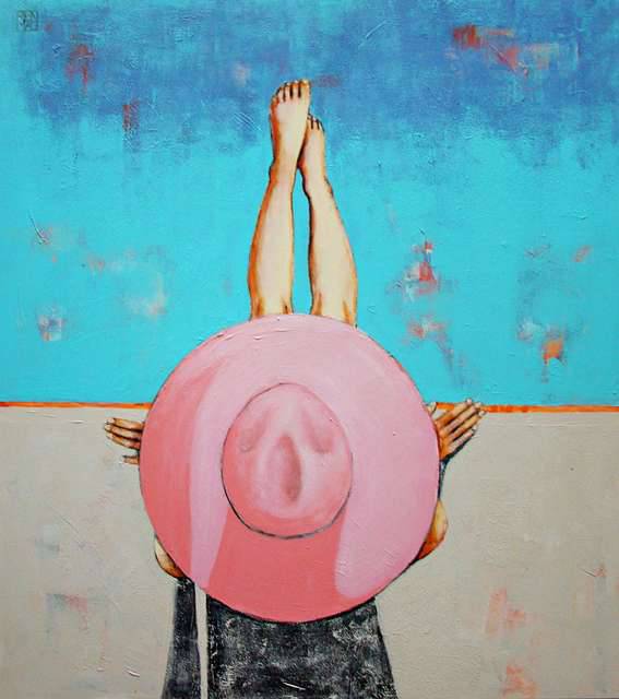 Obraz na płótnie cyklu: In the sun; Zabezpieczony werniksem satynowym , nie wymaga ramy, boczne krawędzie płótna zamalowane są w tonacji obrazu.