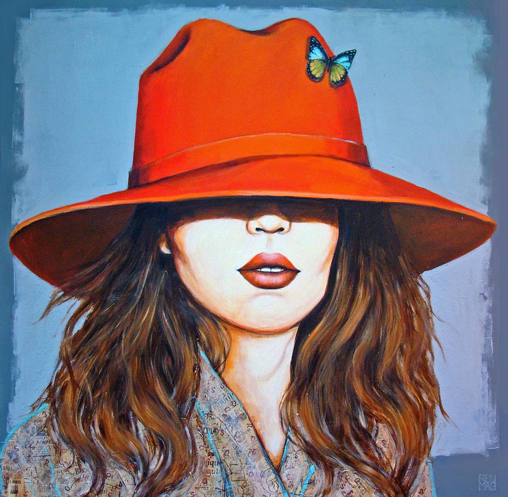 Obraz akrylowy z elementem kolażu .Sygnowany monogramem RenMag.