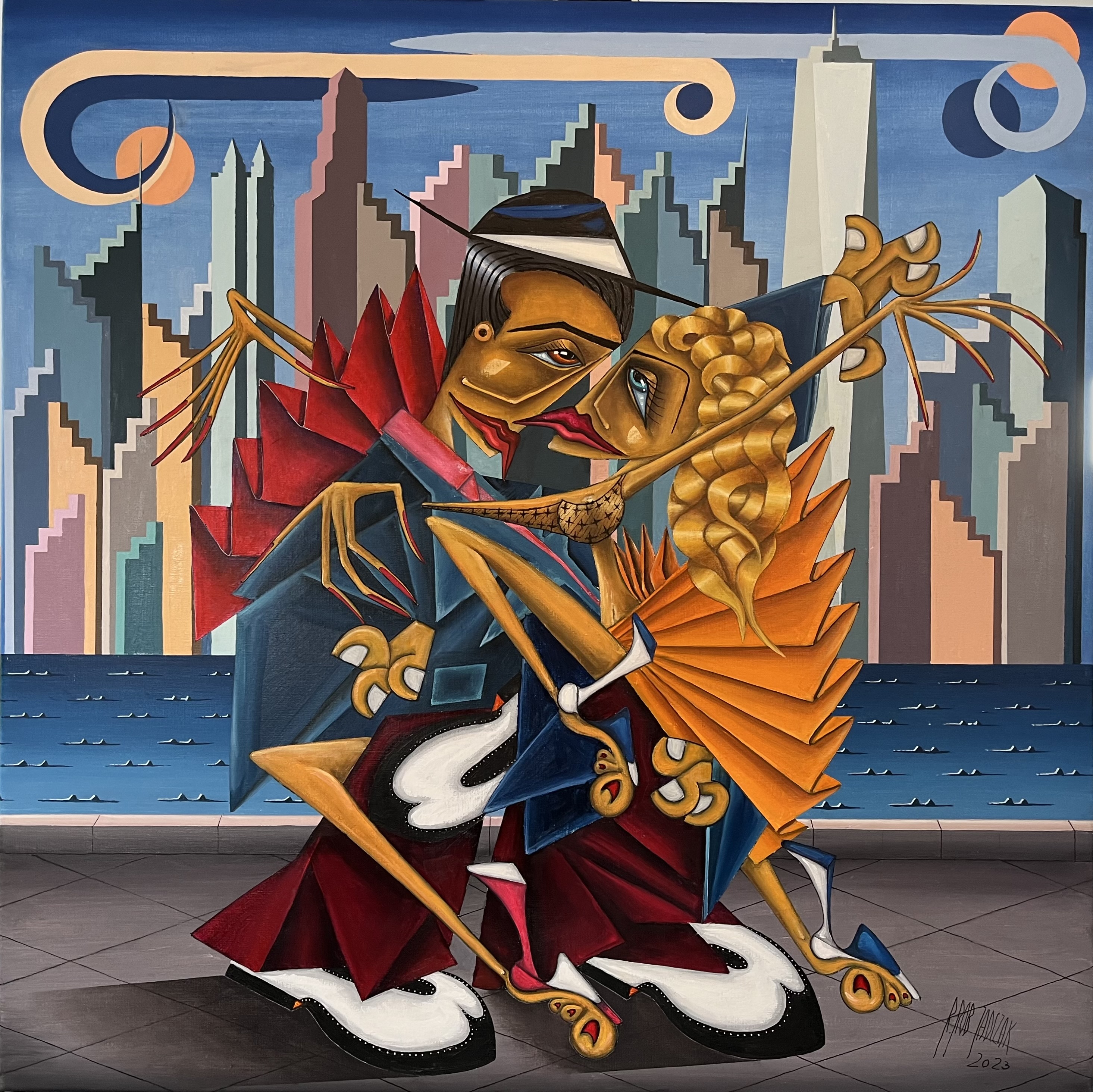 ,,Marlena in New York" Sławna aktorka w Nowym Jorku 2023 100 x 100 olej/płótno