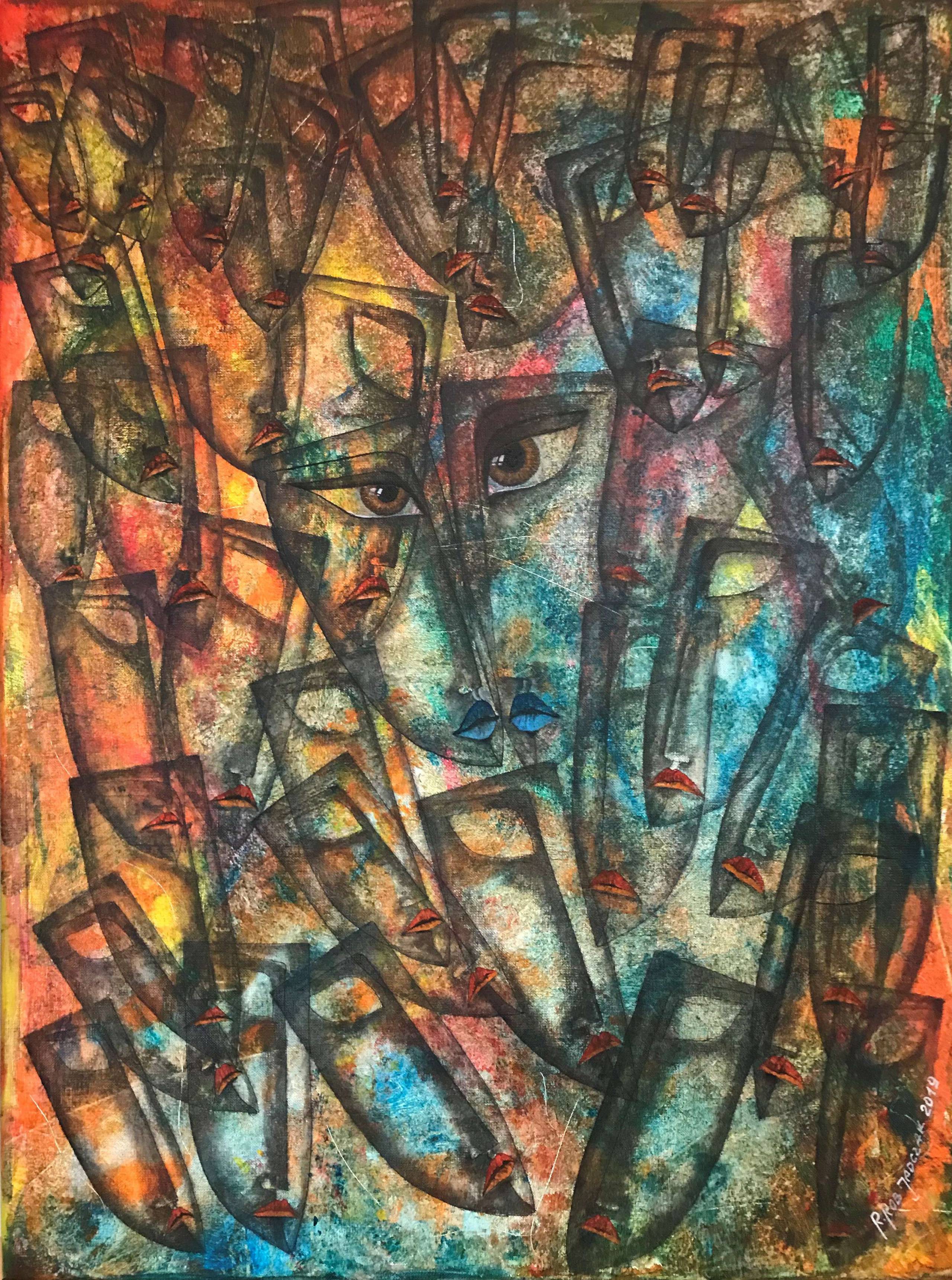 Obraz ,, Aleksytymia" olej na płótnie 2019 Choroba psychiczna części społeczności w której żyjemy ,