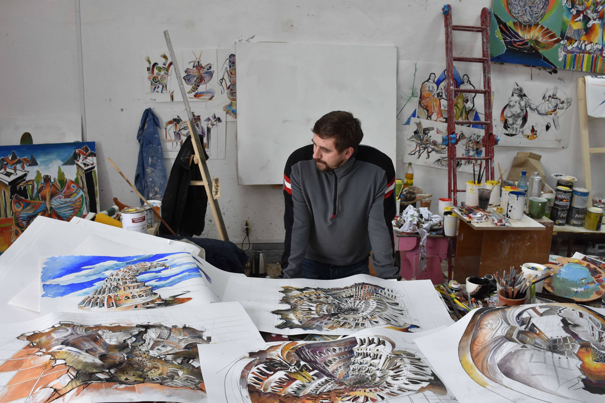 In February 7-9, 2019 I will draw my first 3D drawing. In the main hall of the gallery "Art on Moor" (Ivano-Frankivsk, Ukraine). Here is one of the sketches. If you are an artist and did something like this I will be glad to advice from you. Later I will post a photo of the final work. Sketches have already been sold to my friend and admirer from Germany.