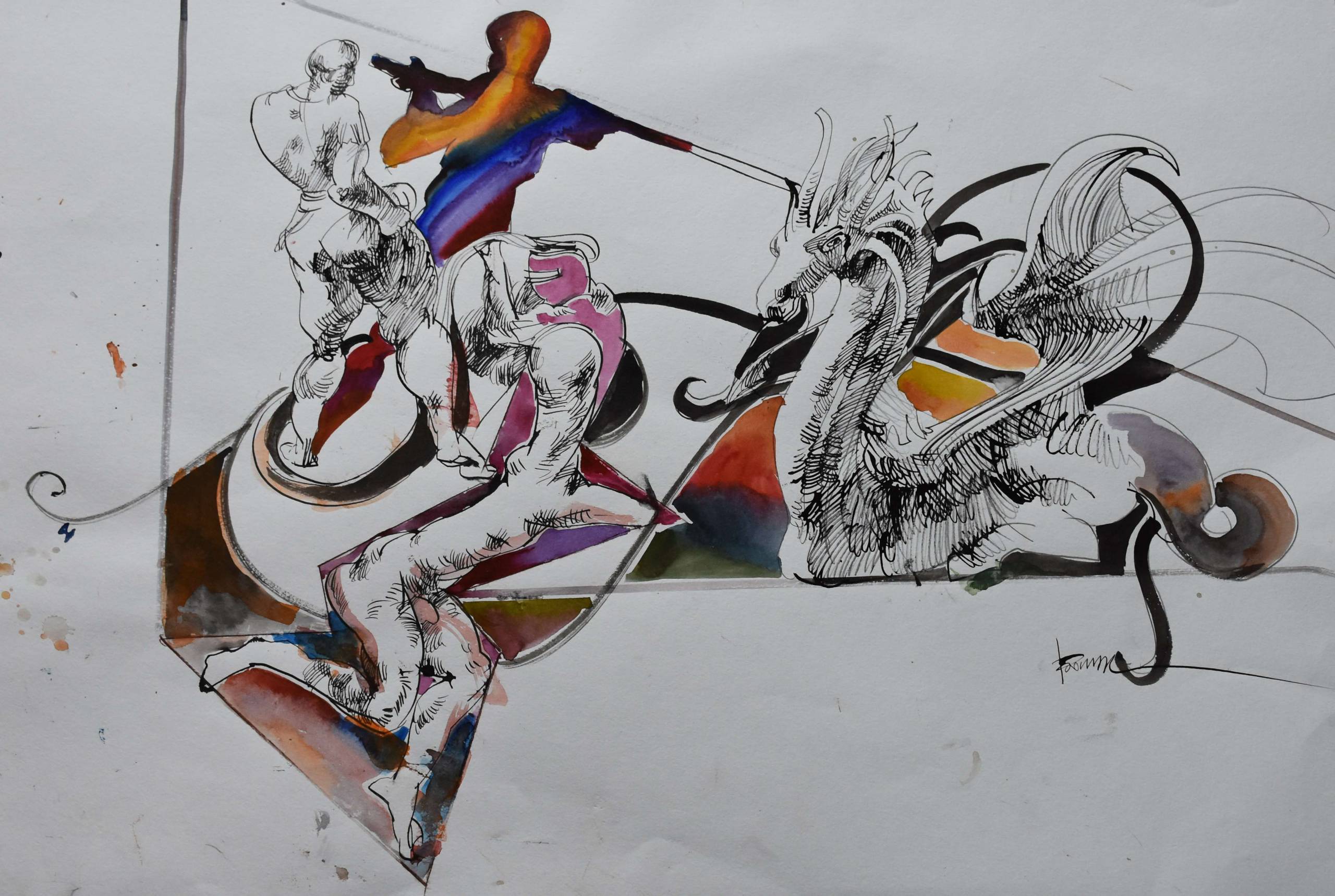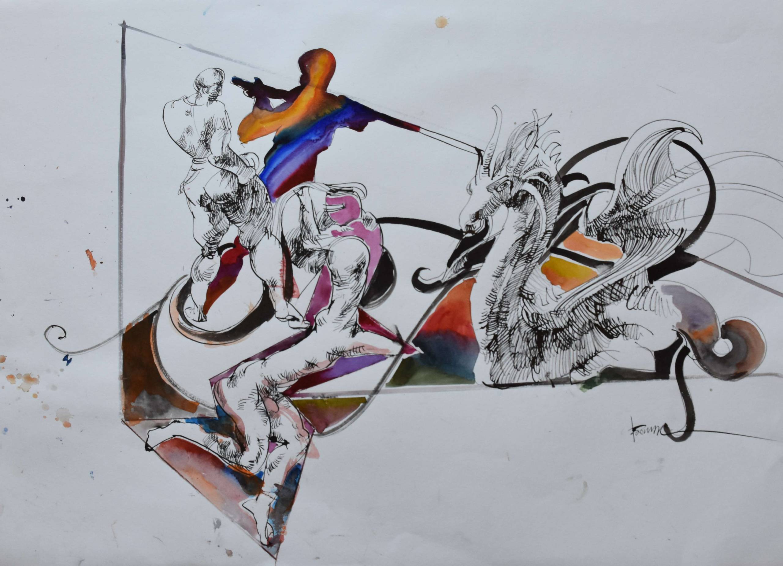 English: Taming the Eastern Dragon ... In additional photos you can see how the picture could be framed. The work belongs to the collection «Internal empiric» which was created in 2018. «Internal empiric» is a large series of works (more than 300), mainly of a philosophical direction. The inspiration was the books and treatises of famous thinkers. This is an attempt to comprehend complex issues and analyze the prospects of future mainstream. Look differently at axioms and see real centers. Search and find new ways of visualization. Русский: Укрощение Дракона восточного ... В дополнительных фото посмотрите пример, как картина будет смотреться, когда оформлена в раму. Работа относится к коллекции «Внутренняя эмпирия», которая создавалась в 2018 году. «Внутренняя эмпирия» – это большая серия работ (более 300), в основном философского направления. Вдохновением послужили книги и трактаты известных мыслителей. Это попытка осмыслить сложные вопросы и проанализировать перспективы будущих мейнстримов. Взглянуть иначе на аксиомы и увидеть настоящие центры. Искать и найти новые пути визуализации.