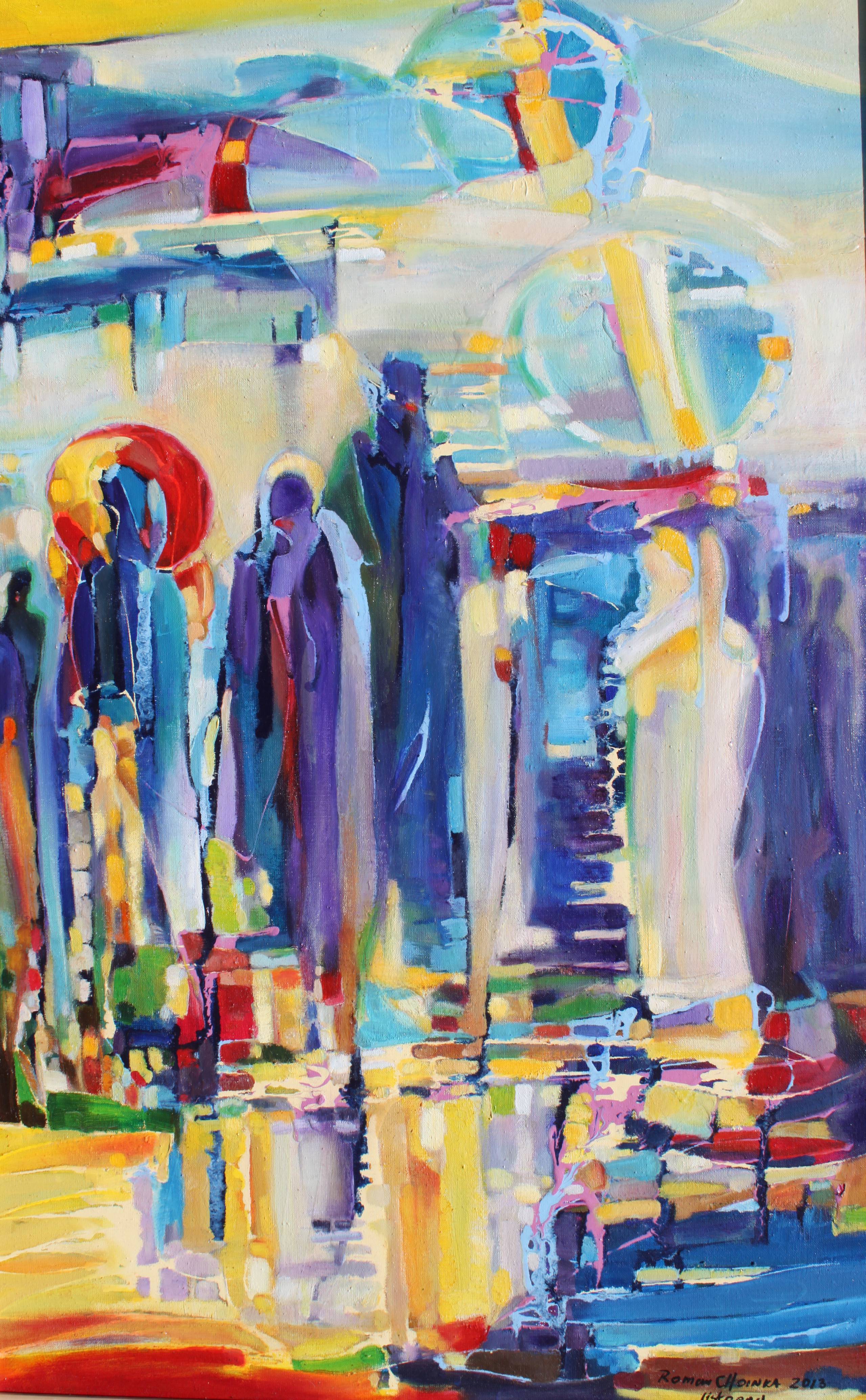 Kompozycja abstrakcyjna z elementami figuratywnymi, ilustracja przysłowia