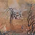 Obraz emanuje ciepłymi tonami brązu i pomarańczy, przywodząc na myśl jesienny zachód słońca. Głównym elementem jest zawiłe drzewo o splątanych gałęziach, które wydają się tańczyć w rytmie niewidzialnej muzyki. Na jego gałęziach wiszą maleńkie, złote kuleczki, dodając mu uroku. Pod drzewem stoją trzy postacie, zatopione w chwili zabawy. Ich ruchy są lekkie jak piórko - one chyba tańczą albo bawią się w coś, nie? Atmosfera jest magiczna, nieco tajemnicza, jakby coś ważnego miało zaraz się wydarzyć. Artystyczny styl dzieła jest delikatny, malarskie pociągnięcia pędzla tworzą miękkie przejścia między kolorami, co dodaje mu dreamlike quality. Twarz postaci są ledwie zarysowane, co pozwala widzowi na własną interpretację ich uczuć. Może to jest przyjacielska zabawa, a może skomplikowana narracja, ukryta przed naszym wzrokiem. Odbiorca może odczuwać nostalgię za dzieciństwem, kiedy wszystko było proste. Kolorowy świat, pełen złotych liści i odcieni jesieni, budzi ciepło w sercu. Nagle wracają wspomnienia beztroskich chwil spędzonych w parku. To jest takie "wow", bo czujesz, że chcesz tam być, że wchodzisz w ten światło-cieniowy taniec i zaczynasz marzyć.