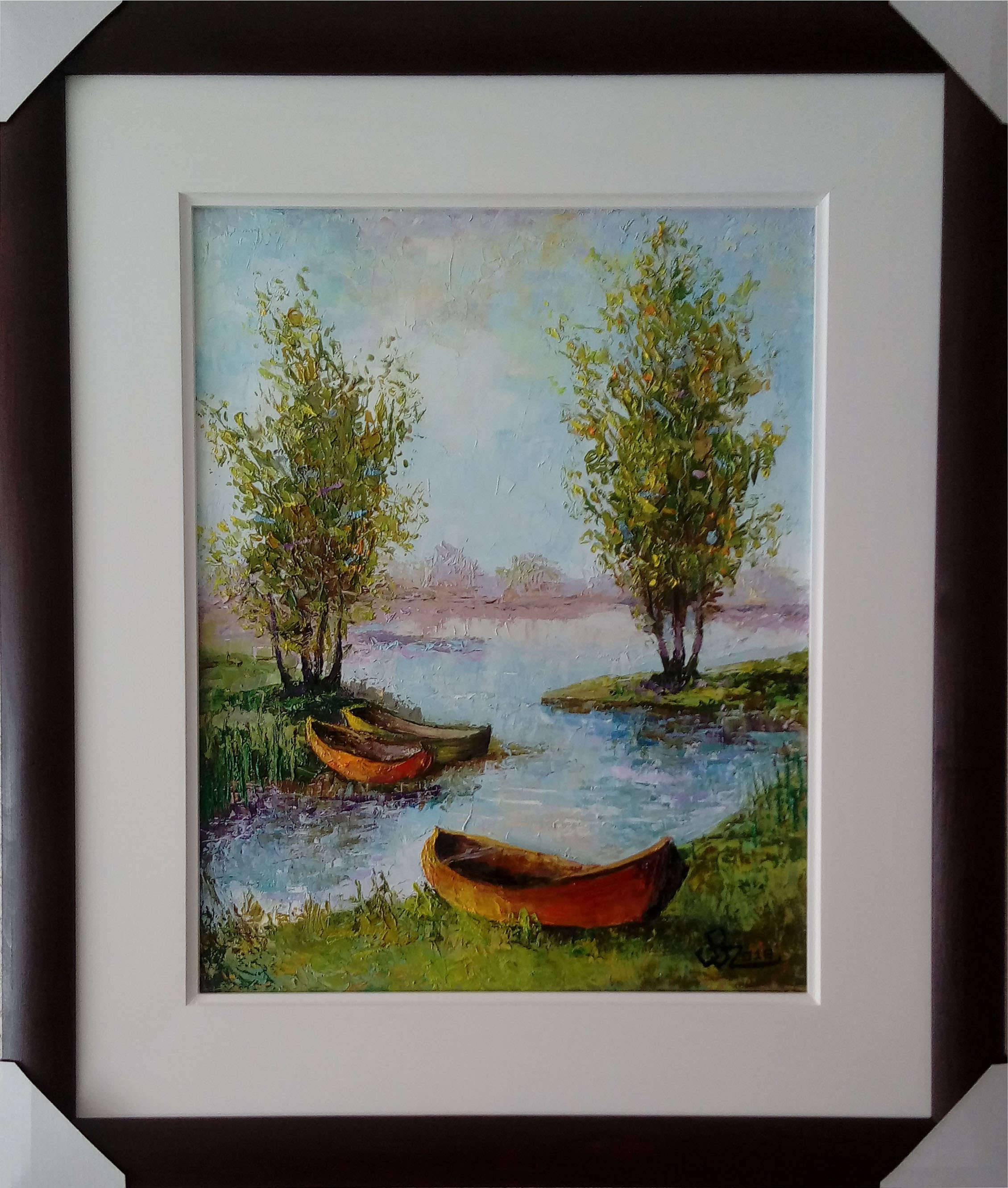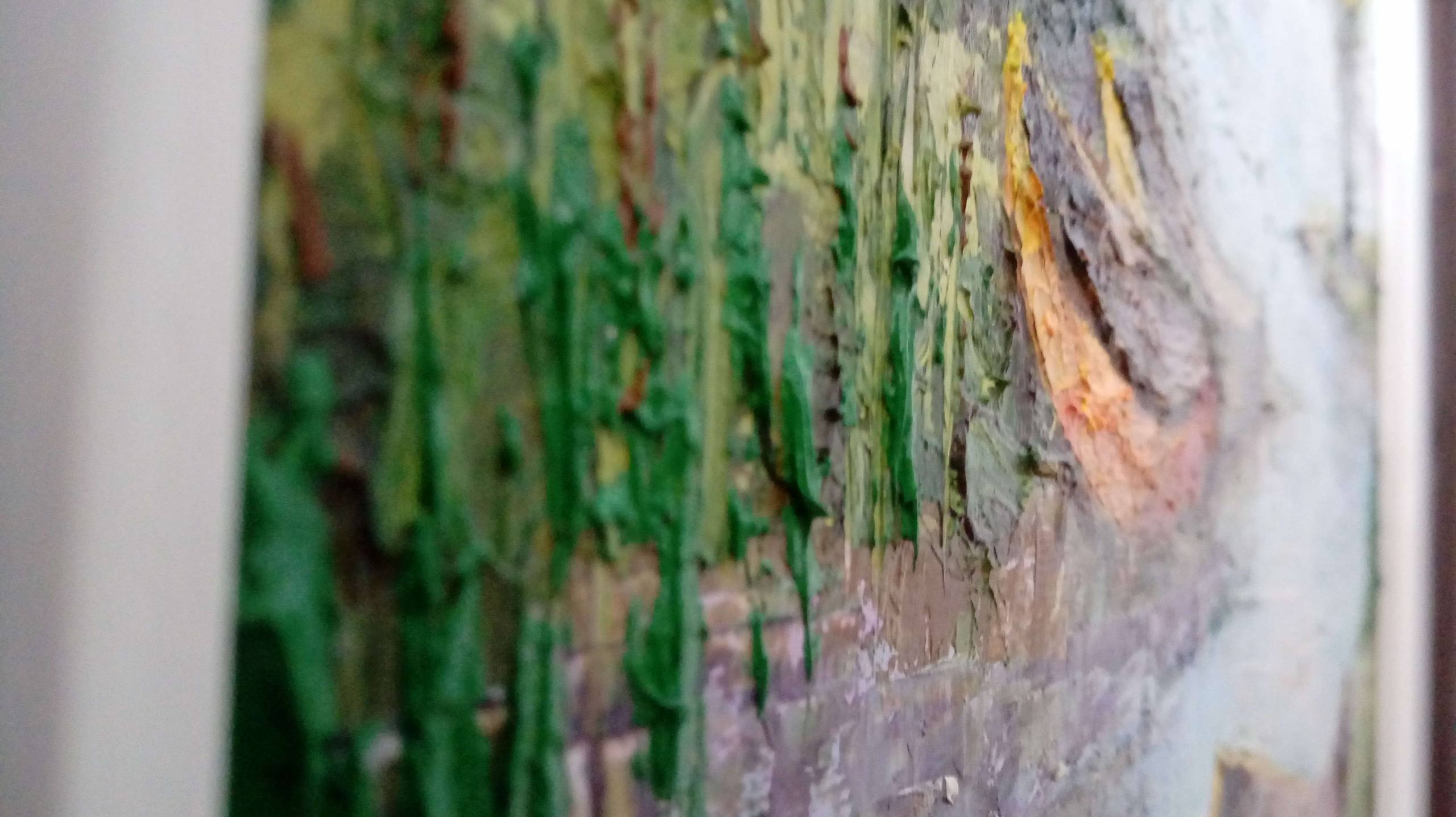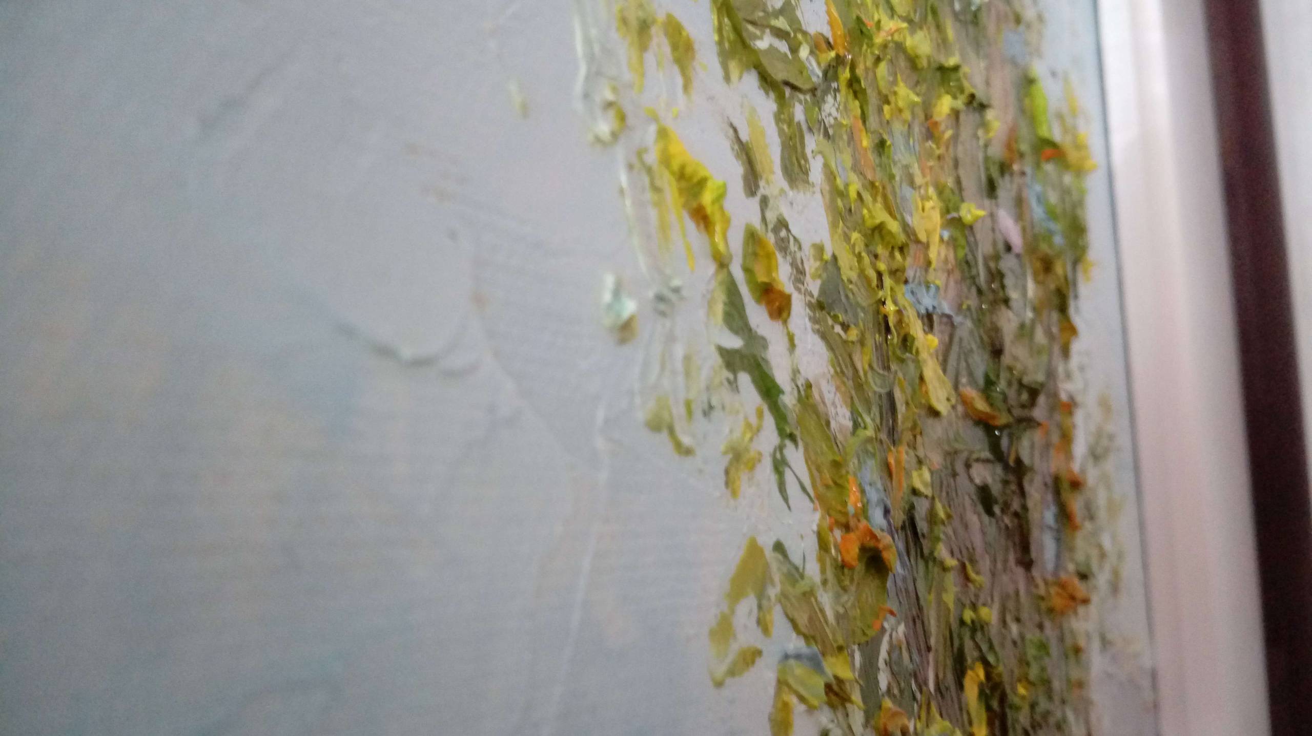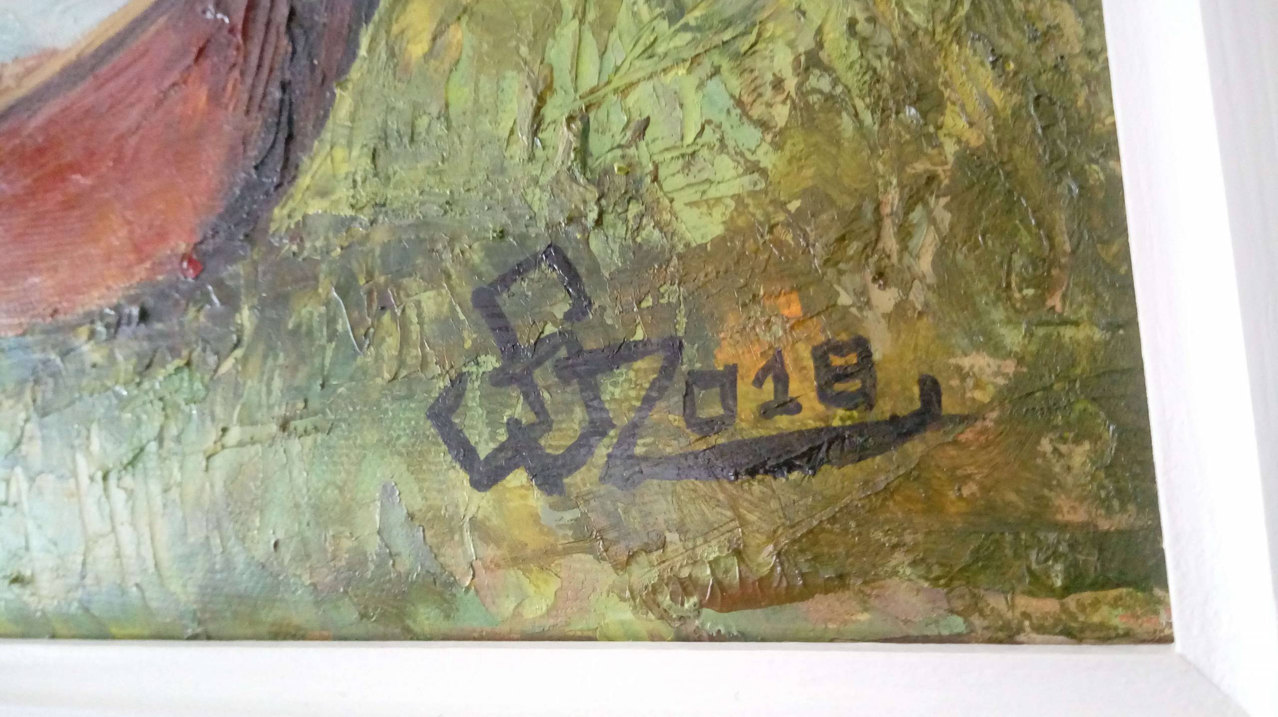 Obraz olejny ręcznie malowany szpachlą wysokiej jakości farbami na gotowym podobraziu malarskim (płótno bawełniane naciągnięte na sosnowy blejtram). Malowany szpachelką, miejscami gruba faktura farby olejnej. Sygnowany, zabezpieczony werniksem. Obraz sprzedawany jest z ramą. Całość ma 73x63 cm Po zakupie klient otrzyma certyfikat autentyczności z podpisem autora obrazu.
