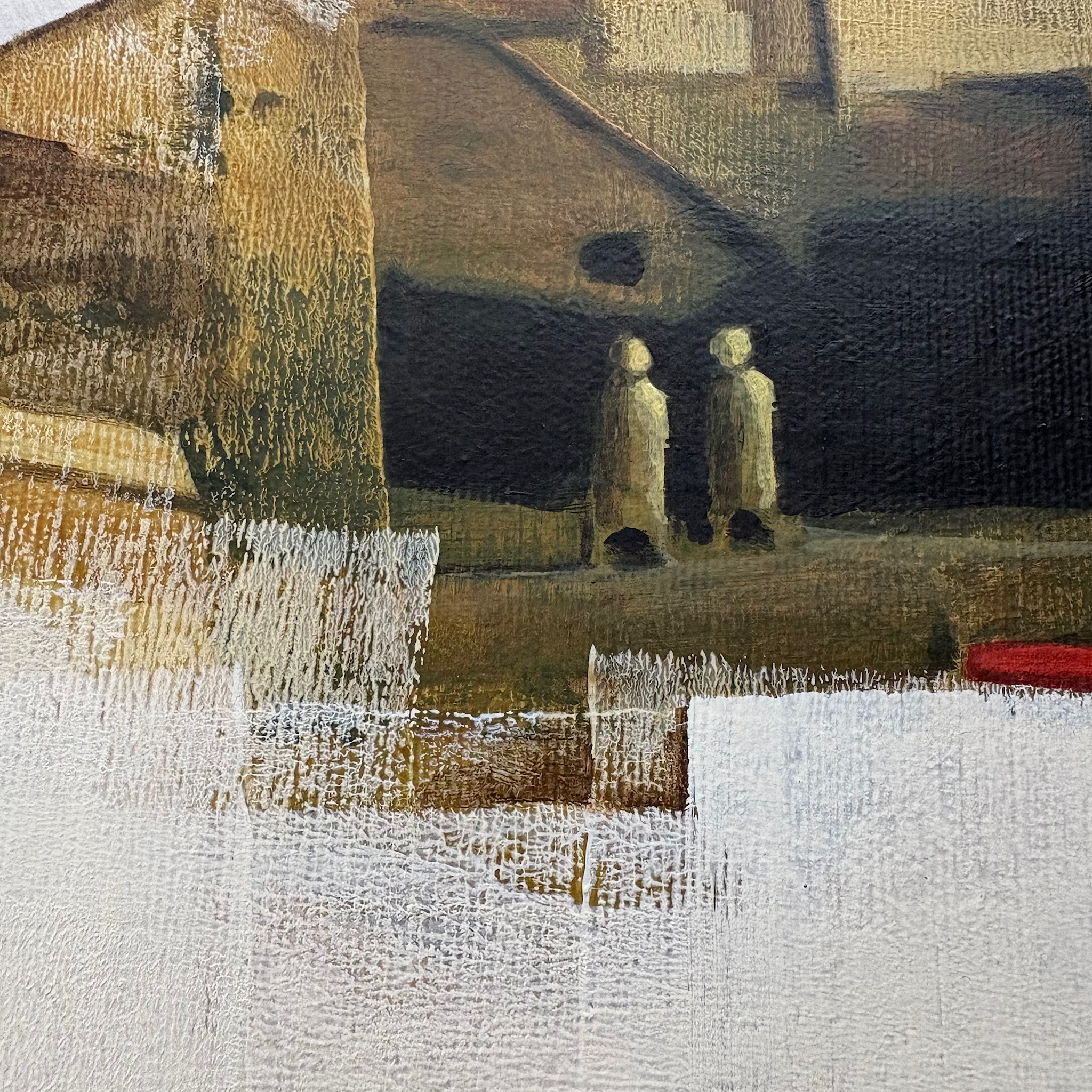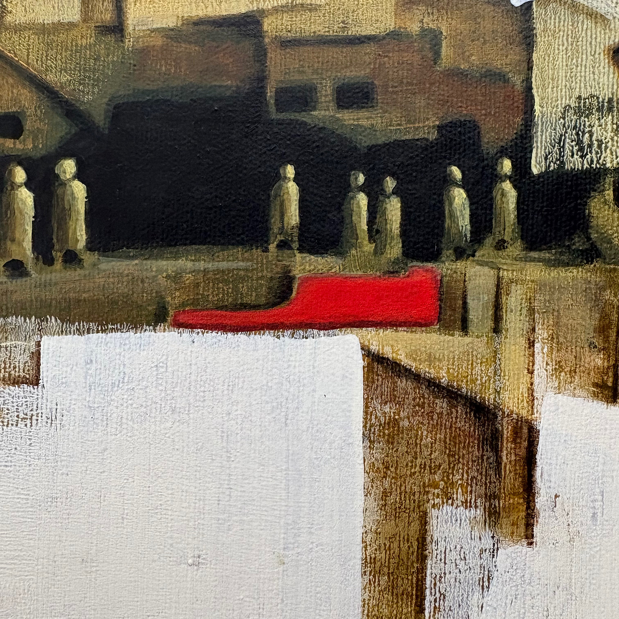 Świadkowie zapomnianego wspomnienia Czy przeszłość może pozostać niezauważona, choć wciąż na nas patrzy? Gdzieś na granicy światów, tam, gdzie rzeczywistość miesza się z czymś nienazwanym, stoją oni. Milczący, nieruchomi, jakby istnieli poza czasem. Ich obecność jest ledwie wyczuwalna, a jednak nie sposób jej zignorować. Może to echo czegoś, co kiedyś było istotne, a może wspomnienie, które nigdy nie zostało zapisane. Czy to my ich nie pamiętamy, czy oni zapomnieli o nas? Obraz 40x40 cm, akryl na płótnie, boki zamalowane. Stworzony dla tych, którzy widzą więcej niż inni. Doskonale odnajdzie się w przestrzeniach pełnych refleksji – w gabinecie, salonie, miejscu pracy, gdzie cisza pozwala dostrzec ukryte znaczenia.