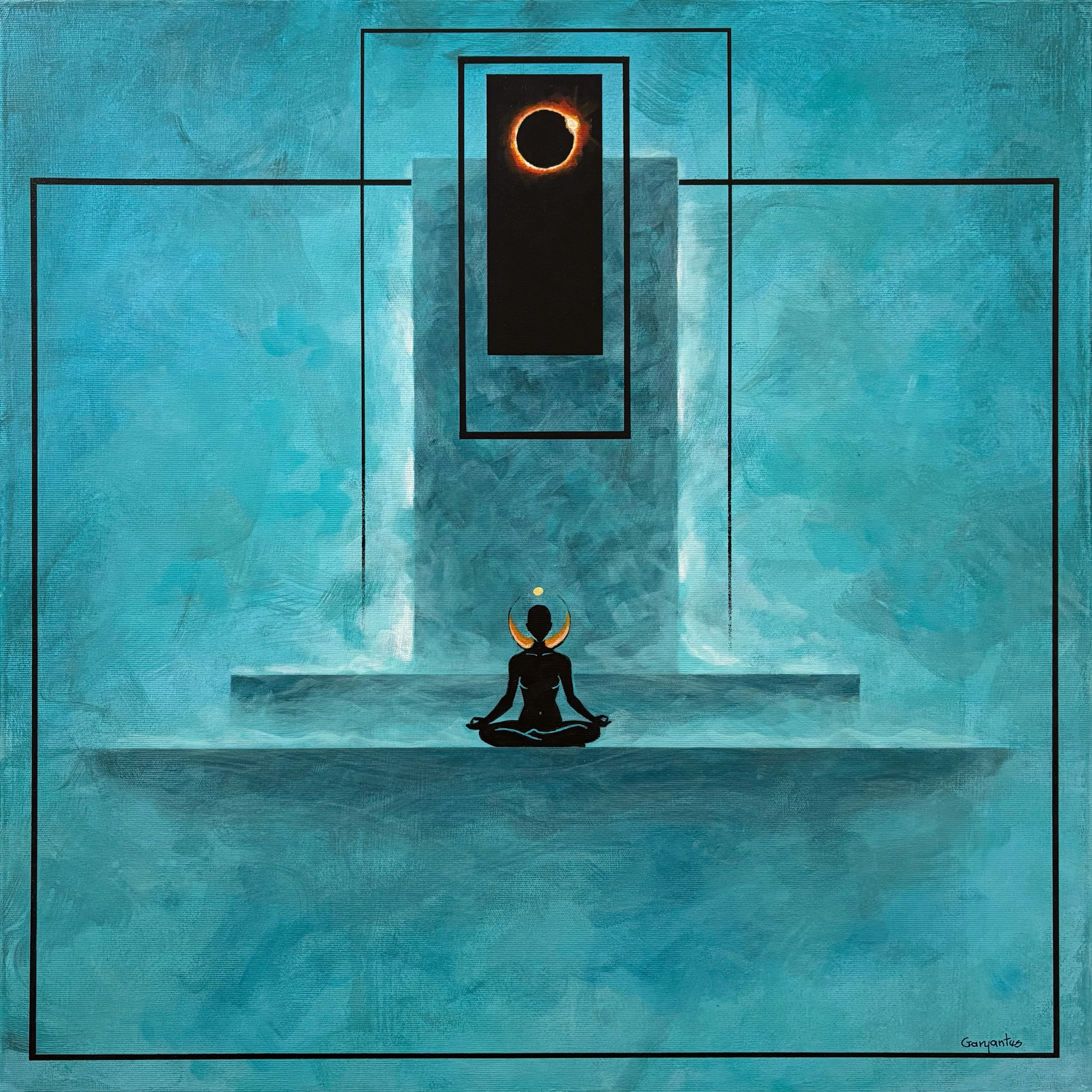 W ciszy, która nie zna granic, postać zanurzona w błękitnym świetle trwa w stanie pomiędzy oddechem a nieskończonością. „Rytuał pierwszej przemiany” to medytacja o obecności – o momencie, w którym świadomość dotyka własnego źródła. Obraz pulsuje spokojem, przyciąga skupienie i pozwala widzowi na zatrzymanie się w sobie. Dane techniczne: • Technika: akryl na płótnie • Wymiary: 60x60cm (3,5 cm grube krosno) • Werniks: satynowy • Styl: abstrakcja symboliczna, surrealizm, minimalizm, malarstwo medytacyjne