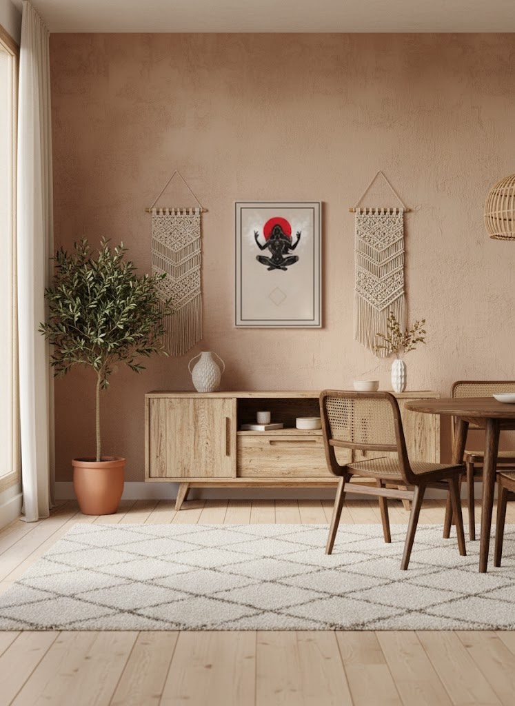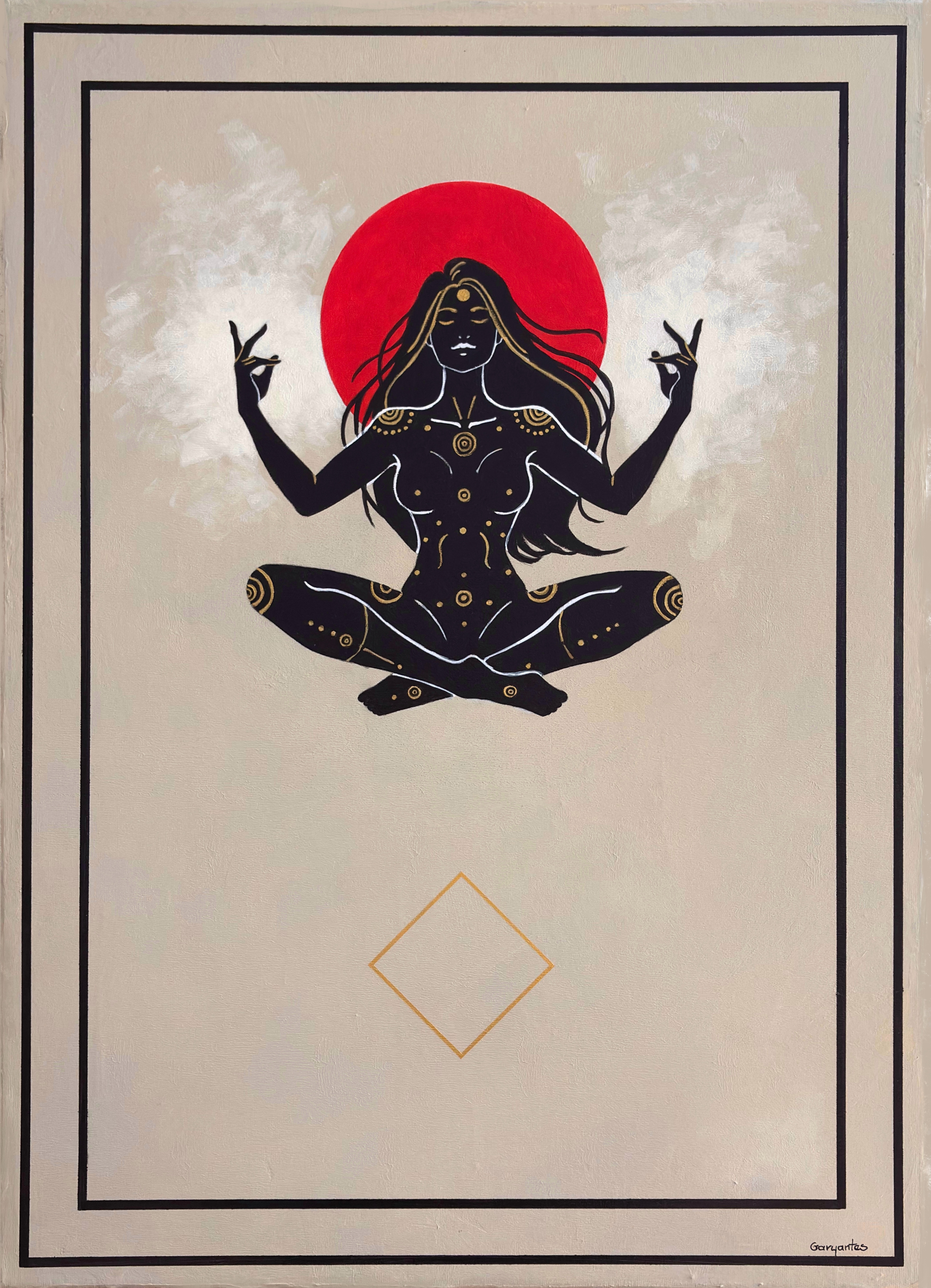 „Równowaga złotej świadomości” to obraz, który nie potrzebuje słów — wystarczy spojrzenie, by poczuć jego puls. Dla tych, którzy czują zanim zobaczą, staje się punktem skupienia i ozdobą przestrzeni, w której cisza ma znaczenie. Czerwone słońce i złote światło tworzą mistyczny balans pomiędzy widzialnym a ukrytym, jak oddech pomiędzy światami. Zawerniksowany satynowo, wymiary 70×50 cm. Grube krosno 3,5cm