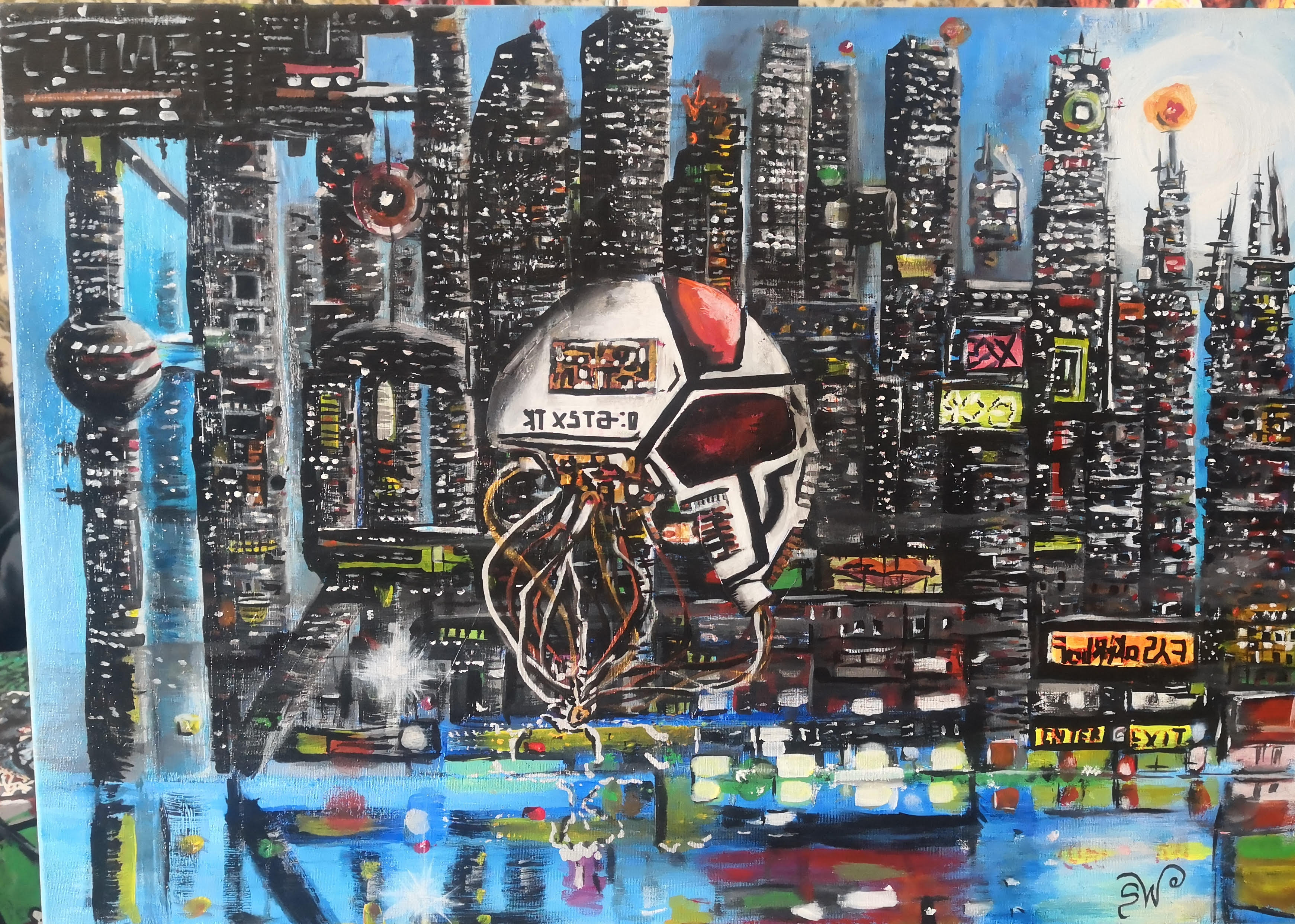 Ten obraz akryl na płótnie o tytule -cyberpunk- wymiary 50x70 cm