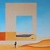 Obraz z nowego cyklu „Świat, którego nie ma” Obraz jest przepięknym krajobrazem abstrakcji, pełnym intensywnych kolorów. Dominuje tu błękit nieba, kontrastujący z ciepłymi, złocistymi odcieniami piachu. Na pierwszy rzut oka, widzimy nierealną kompozycję: ogromny, geometryczny prostokąt wznoszący się nad horyzontem, jakby ktoś zostawił okno otwarte na pustynię. Jednolity, niebieski tło sprawia, że pozostałe elementy aż kipią od dynamiki. Jeden kształt przypomina ludzka sylwetkę, samotnie stojącą na piasku, rzucającą długą, uspokajającą shadow. Atmosfera obrazu jest pełna spokoju i refleksji, ale jednocześnie budzi ciekawość. Można wręcz poczuć lekki podmuch wiatru głaszczący skórę i słoneczne ciepło, które ogrzewa serce. Artysta użył prostych form i płaskiego malarstwa, tworząc niemal minimalistyczną wizję. Technika jest niezwykle precyzyjna, gdzie każdy kolor ma swoje miejsce, niczym w puzzle idealnie do siebie pasujące. Obraz może budzić różnorodne emocje. Dla jednych będzie to opowieść o samotności, dla innych afirmacja wolności. Maluch mógłby powiedzieć: "Patrz, ktoś robi dziwne sztuczki na piasku!" Czasem w tym prostym, niemal dziecięcym spojrzeniu kryje się najwięcej prawdy. Dzieło zachwyca swoją uniwersalnością, bo w końcu, kto nie chciałby czasem uciec w takie miejsce, by po prostu być. To niemal magiczne, jak jeden obraz może wzbudzić tyle... thoughts.