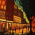 Miasto. Ludzie spacerujący ulicą. Światło z witryn sklepowych i okien domów. Gwar wieczornego miasta.