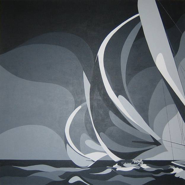 Ten obraz przyciąga wzrok swoimi szarościami i kontrastami, które płynnie przechodzą od głębokiego czerni do jasnego bieli. Fale dynamicznie wiją się po powierzchni, jakby chciały opowiedzieć historię wiatru i wody. Żaglówki unoszą się na falach niczym marzenia, walcząc z elementami natury. Całość kompozycji - zawiłe linie, płynne kształty - tworzą iluzję ruchu i wolności. Artysta w mistrzowski sposób gra światłem i cieniem, używając techniki monochromatycznej, aby podkreślić dramatyzm sceny. Atmosfera jest uspokajająca, ale z nutą ekscytacji; to uczucie, gdy stoisz na brzegu i czujesz, że przygoda jest tuż za horyzontem. Styl obrazu przypomina mi muzyczny utwór, w którym każda nuta jest starannie przemyślana. Patrząc na to dzieło, możesz poczuć powiew wiatru na twarzy i zapach morskiej bryzy. Sztuka ta wciąga nas w swoją opowieść, zmuszając do refleksji na temat nieuchwytności momentów. Wow, jak ładnie! Dla mnie ten obraz to podróż, gdzie każdy element jest przemyślany i precyzyjnie zinterpretowany. A touch of mystery sprawia, że chce się wracać i odkrywać więcej za każdym razem. To prawdziwy majstersztyk artystyczny, który zasługuje na chwilę zadumy i podziwu.
