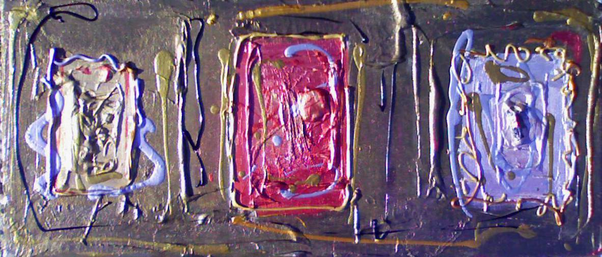 Na obrazie widzimy złożoną kompozycję trzech prostokątnych form ułożonych równolegle. Dominują ciemne tony, brąz i szarość, które kontrastują z jasnymi, intensywnymi barwami — czerwienią i błękitem — każda z form jakby drzwi otwierające na inne światy. Kolory są dynamiczne, niemal biją z nich energia, przypominając stylem ekspresjonizm abstrakcyjny. Atmosfera dzieła jest pełna tajemniczości, jakby obrazy pochodziły z innego wymiaru. Artystyczne techniki zdradzają śmiałe pociągnięcia pędzla oraz technikę drippingu, gdzie farba spływa i zastyga na powierzchni płótna, tworząc zawiłą siatkę wzorów. Przyglądając się obrazowi, można poczuć delikatne napięcie, jakby coś miało się zaraz wydarzyć. Dla mnie, to jak "portal" do niepoznanego, echo marzeń sennych, które wymykają się spod kontroli. Jakby ciche "What if" unoszące się w powietrzu. Historie ukryte w płaszczyźnie barw i kształtów rozbudzają wyobraźnię, zachęcają do stworzenia własnej interpretacji. Moja siostra powiedziała, że wygląda jak magiczny obraz, który zaraz ożyje. I coś w tym jest, w tej dziecięcej intuicji. Takie rzeczy potrafią wciągnąć.