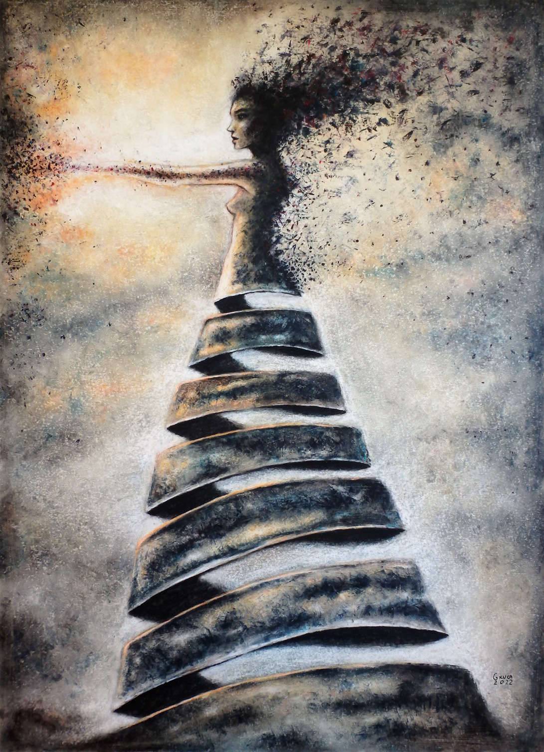 Praca malowana na płycie kartonowej, zawerniksowana i oprawiona w ramę. Do pracy dołączany jest certyfikat autentyczności.