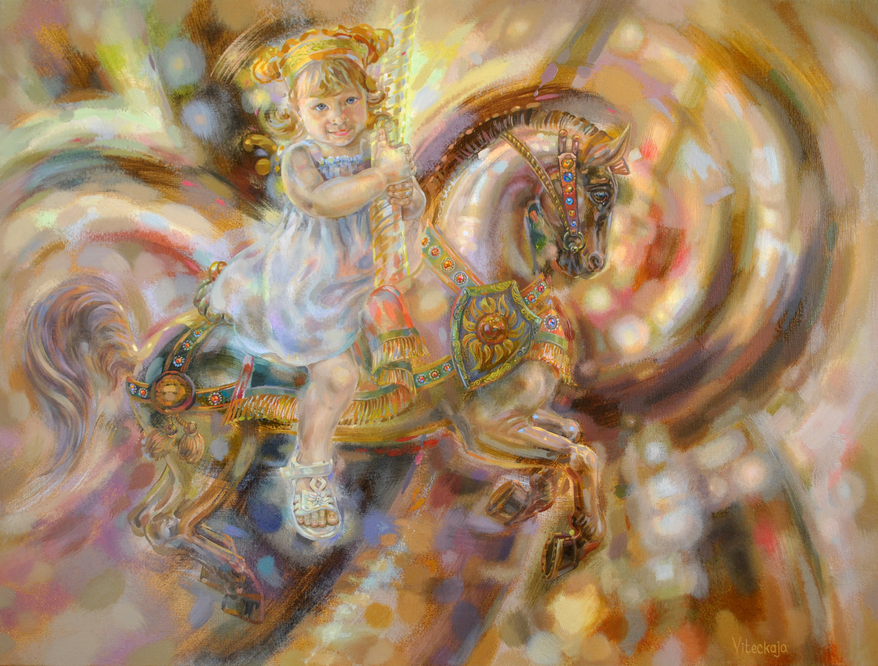 Praca odzwierciedla wspaniały świat dziecięcych zabaw. Letni park, karuzele i śmiech. Złoty czas, nieokiełznana zabawa i prawdziwa wolność. Słodki, cudowny czas wypełniony naturalną siłą i pragnieniem życia, nowymi odkryciami i wrażeniami. Obraz mówi, że prostym i naturalnym znaczeniem życia jest samo życie. Obraz napełnia widza życiową energią, siłą i ciepłymi wspomnieniami.