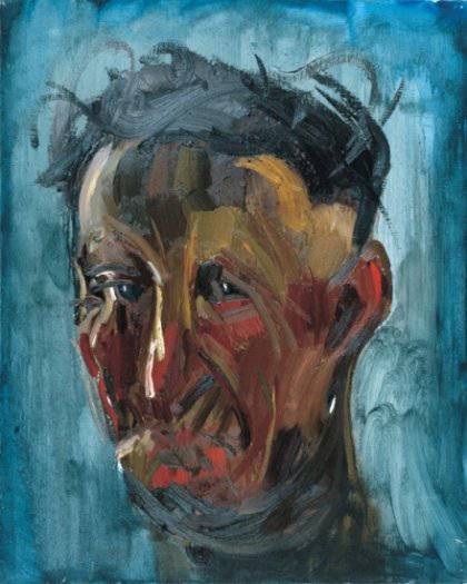 Na obrazie widzimy portret mężczyzny, którego twarz wyraża ogrom emocji. Dominują tu chłodne odcienie niebieskiego i szarości, które kontrastują z ciepłymi brązami i czerwieniami na twarzy. Kompozycja jest dynamiczna, pełna ekspresji, jakby same pociągnięcia pędzla opowiadały historię. Ta ruchliwość kształtów i kolorów nadaje dziełu swobodny i nieco niespokojny charakter. Atmosfera obrazu jest złożona. Z jednej strony czuje się pewien niepokój, jakby postać próbowała nam coś przekazać, a z drugiej panuje wrażenie refleksji, może nawet smutku. Artysta wykorzystał technikę impasto, co widać w grubych warstwach farby, które niemal wyzierają z płótna, dodając tekstury i głębi. Odbiorca może zadać sobie pytanie: co ten mężczyzna przeżył? Czy jego spojrzenie to melancholia czy może nostalgia? Dla mnie, ten portret jest jak tajemnicza opowieść. Ciekawe, co by powiedział, gdyby mógł mówić. To jest takie "enigmatic". Styl artysty wydaje się być bliski ekspresjonizmowi, kładąc nacisk na uczucia bardziej niż na realistyczne przedstawienie. Ktoś mógłby powiedzieć: "To wygląda jak coś, co mój tata by namalował, gdyby był smutny". Obraz budzi we mnie poczucie zadumy, ale też jakiś cichy, wewnętrzny dialog. Fascynujące.