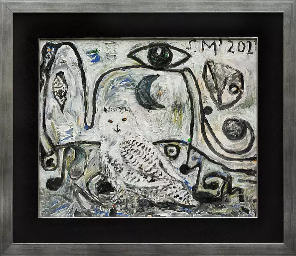 "Sowa", olej na płótnie, format 50x60 cm (w ramie około 70x80 cm)