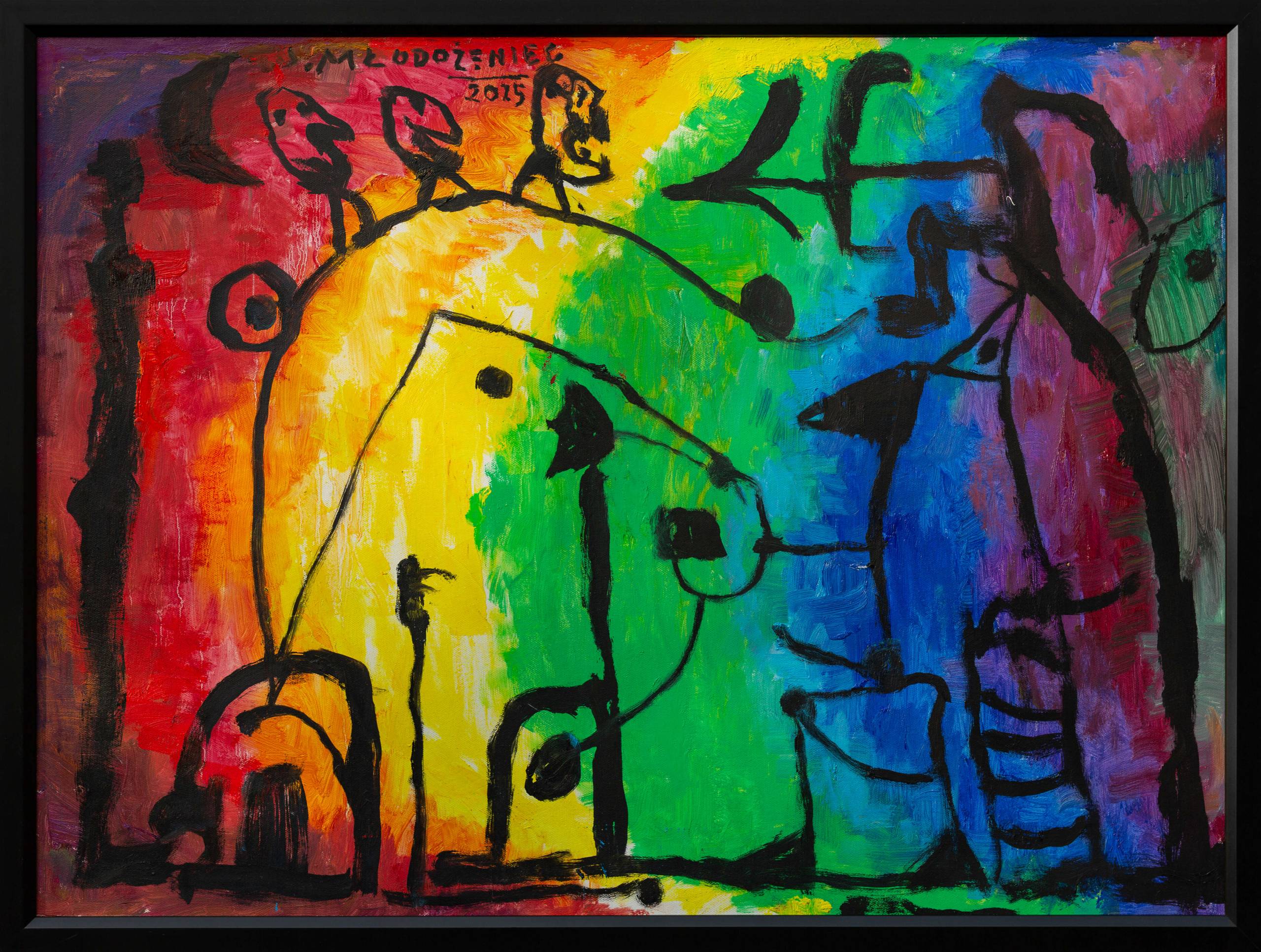 "Tęczowy Aborygen", olej na płótnie, format 74x100 cm (w ramie 79x105 cm)