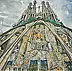 Obraz przyciąga wzrok swoją zawiłą kompozycją i dynamicznymi kolorami. Paleta składa się z ziemistych odcieni beżu i szarości, które przeplatają się z bardziej nasyconymi zielenią i pomarańczem, tworząc mozaikowy efekt. Wieże wznoszą się majestatycznie ku niebu, ich smukłe, finezyjne linie dodają dziełu lekkości i dostojeństwa. Chmury wydają się tańczyć wokół konstrukcji, nadając całemu obrazowi energii i ruchu. To jakby samo niebo chciało przytulić te kamienne giganty. Styl artysty jest wyrazisty, pełen brushstrokes, które dodają pracy tekstury i głębi. Można poczuć, jak farba niemalże unosi się na płótnie, jakby chciała dotknąć widza. Obraz budzi zarówno podziw, jak i pewien niepokój. Monumentalność przedstawionego budynku robi wrażenie, ale też wywołuje refleksję nad przemijaniem i trwałością ludzkiego dzieła. To jest masterpiece, które jak magnes przyciąga wzrok, zmuszając do zadumy. "To wygląda jak zamek z bajki!" - powiedziałby pewnie 7-latek. Pociąga nas jego tajemniczość i piękno, jakby ,,mówił'' jakąś starożytną opowieść, której znaczenie znamy tylko po części. Obraz wywołuje mieszankę emocji, od zdumienia po pełną podziwu kontemplację. To jak podróż w głąb stworzonego widoku, pełnego detali i ukrytych historii wplecionych w architektoniczną symfonię.