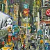 Obraz tętni życiem, ukazując miejską dżunglę w pełnej okazałości. Dominują w nim jaskrawe kolory, takie jak żółć i czerwień, które kontrastują z ciemniejszymi, bardziej stonowanymi barwami. W centrum widzimy ulicę z taksówkami i przechodniami, a wokół unoszą się neonowe reklamy i billboardy. Kompozycja jest chaotyczna, ale w tym cały jej urok - wszystko zdaje się być w ciągłym ruchu. Atmosfera obrazu przypomina niekończącą się metropolię, pełną gwaru i energii. Jest głośno i dynamicznie, a jednocześnie, gdzieś tam w środku, czai się nuta nostalgii. Styl obrazu to impresjonizm ze szczyptą ekspresjonizmu. Płynne pociągnięcia pędzla i rozmyte kontury oddają ulotność chwili, jakby artysta złapał miasto w biegu. Patrząc na ten obraz, można poczuć zabiegany rytm miasta, poczuć się zagubionym, ale i zaintrygowanym. Dla mnie to jak przejażdżka roller coasterem przez Times Square. Dosłownie można usłyszeć dźwięk klaksonów i zobaczyć migoczące światła wielkiego miasta. "Wow, te żółte taksówki wyglądają jak słońce na ulicy!" - pomyślałoby dziecko. Obraz ten przypomina mi słowo "vibrant" - pełen życia i energii, to doskonałe odwzorowanie miejskiego chaosu. Ciekawe, ile historii kryje się za każdą twarzą na tym malunku. Jakie sekrety nosi w sobie to miejsce?