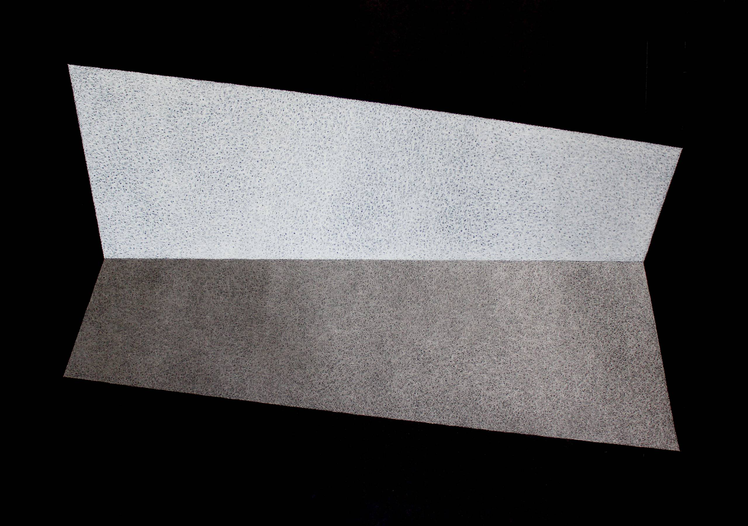 Rysunek wykonany tuszami na czarnym kartonie z cyklu "Zagięcie czasoprzestrzeni" z 2017 roku.