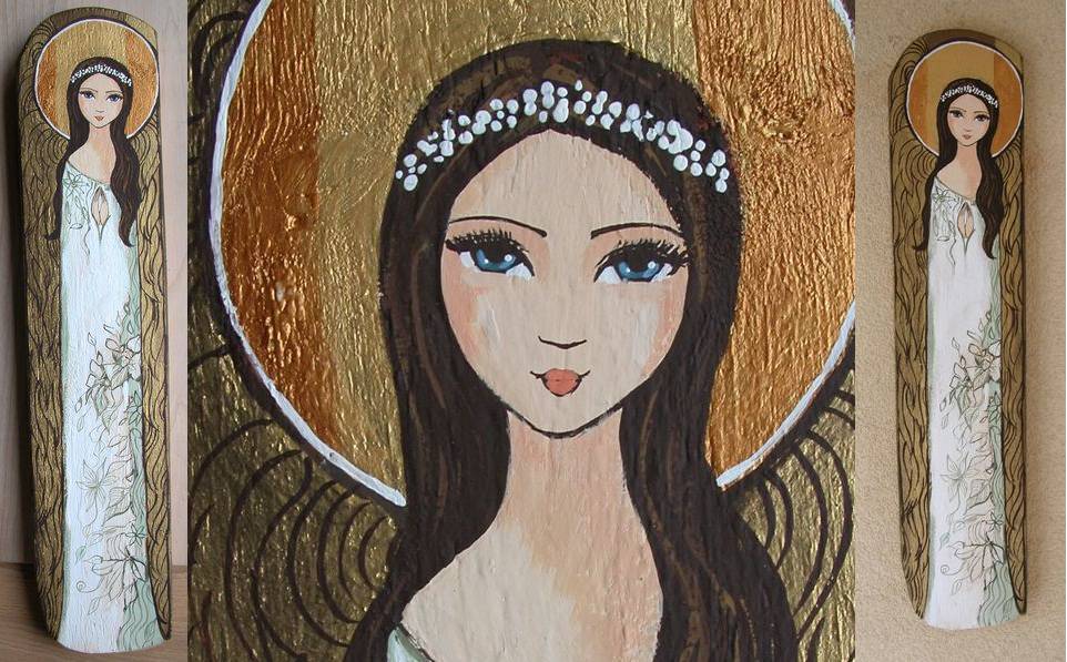 Obraz niezwykle dekoracyjny, emanuje dobrą energia i tworzy niepowtarzalny nastrój w każdym wnętrzu... Obraz sygnowany i datowany przez autora. Wykonany włoskimi farbami akrylowymi na zabezpieczonej STAREJ desce o oryginalnym nieregularnym kształcie, ( lite drewno), artysta wykorzystał naturalne walory każdej deski: fakturę, słoje drewna czy spękania do stworzenia unikatowego obrazu... wysokość - ok. 65 cm szerokość (w najszerszym miejscu) - ok. 14 cm grubość podobrazia - ok. 2,5 cm