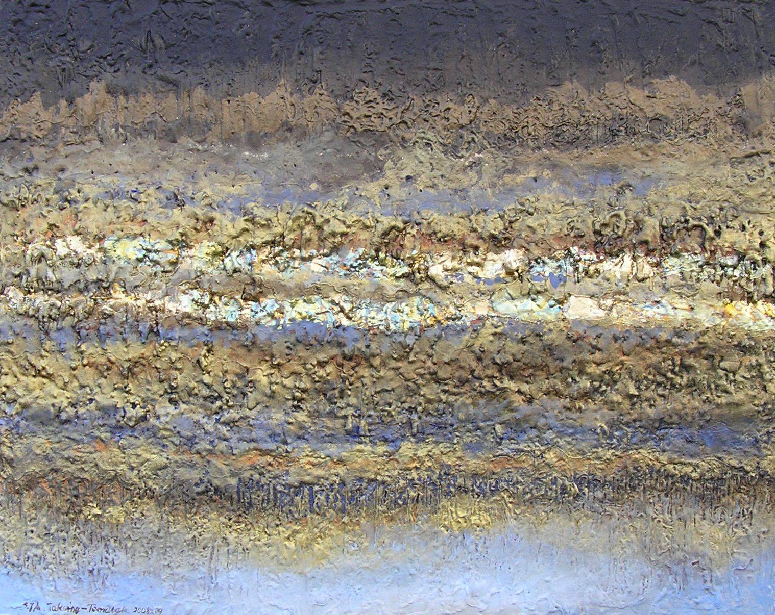 Obraz to istny koncert kolorów i faktur, gdzie dominują odcienie brązu, złota i niebieskości. Kiedy patrzę na to dzieło, czuję, jakby artysta uchwycił esencję zmierzchającego dnia nad tętniącym życiem krajobrazem. Wzburzona, niemalże chropowata powierzchnia sprawia, że wydaje się żyć, a malarska tekstura dodatkowo potęguje wrażenie głębi. Styl tego obrazu przypomina technikę impasto, w której grube pociągnięcia farbą dodają dramatyzmu i energii. To sztuka, która niemal prosi się, by ją dotknąć, jakby wypełniona po brzegi emocją. Patrząc na ten obraz, czuje się nostalgia i spokój, ale też jakąś tajemniczą dynamikę. Można sobie wyobrażać, że to widok zasnutej chmurami doliny, wręcz słychać dalekie echo przyrody. What a captivating scene! Dzieci by powiedziały, że to jak krajobraz z bajki, gdzie wszystko jest możliwe. Dzieło emanuje również niezwykłą harmonią między światem rzeczywistym a abstrakcją, co może skłaniać do refleksji nad przemijaniem i pięknem chwil ulotnych jak mgła o poranku. Interesujące, jak sztuka potrafi tak mocno oddziaływać na naszą wyobraźnię.