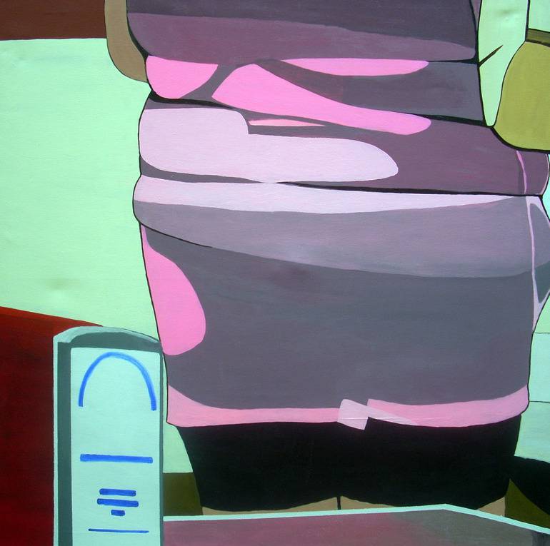 Obraz emanuje pewnym ciepłem, choć na pierwszy rzut oka jest dość enigmatyczny. Dominuje w nim róż, przetykany delikatnymi odcieniami fioletu i zieleni, które tworzą harmonijną, choć nieco niecodzienną kompozycję. Kształty są abstrakcyjne i geometryczne, przypominając układankę, gdzie każdy element ma swoje miejsce. Choć malowane płynnie, kontury są wyraziste i mocno zaznaczone. Atmosfera obrazu jest zarówno spokojna, jak i intrygująca, pozostawiając wiele do interpretacji. To niczym oglądanie snu na jawie, gdzie kolory i formy unoszą się swobodnie. Artysta zastosował technikę płaskiej plamy barwnej, trochę jak w pop-arcie, co nadaje dziełu współczesny sznyt. Mimo prostoty formy, wyzwalają one emocje - może zaskoczenia, może zastanowienia. Co tak naprawdę tu widzimy? "To przypomina mi wielką różową chmurę!" - mogłoby powiedzieć dziecko, a ja poczułbym ten dziecięcy zachwyt i beztroskę. Myślę, że ten obraz mówi o codzienności w niecodzienny sposób, o prostocie w chaosie. A maybe po prostu chodziło o zabawę kolorem? Interpretacje mogą być nieskończone. Interesujące, jak sztuka potrafi wzbudzać osobiste refleksje, prawda?