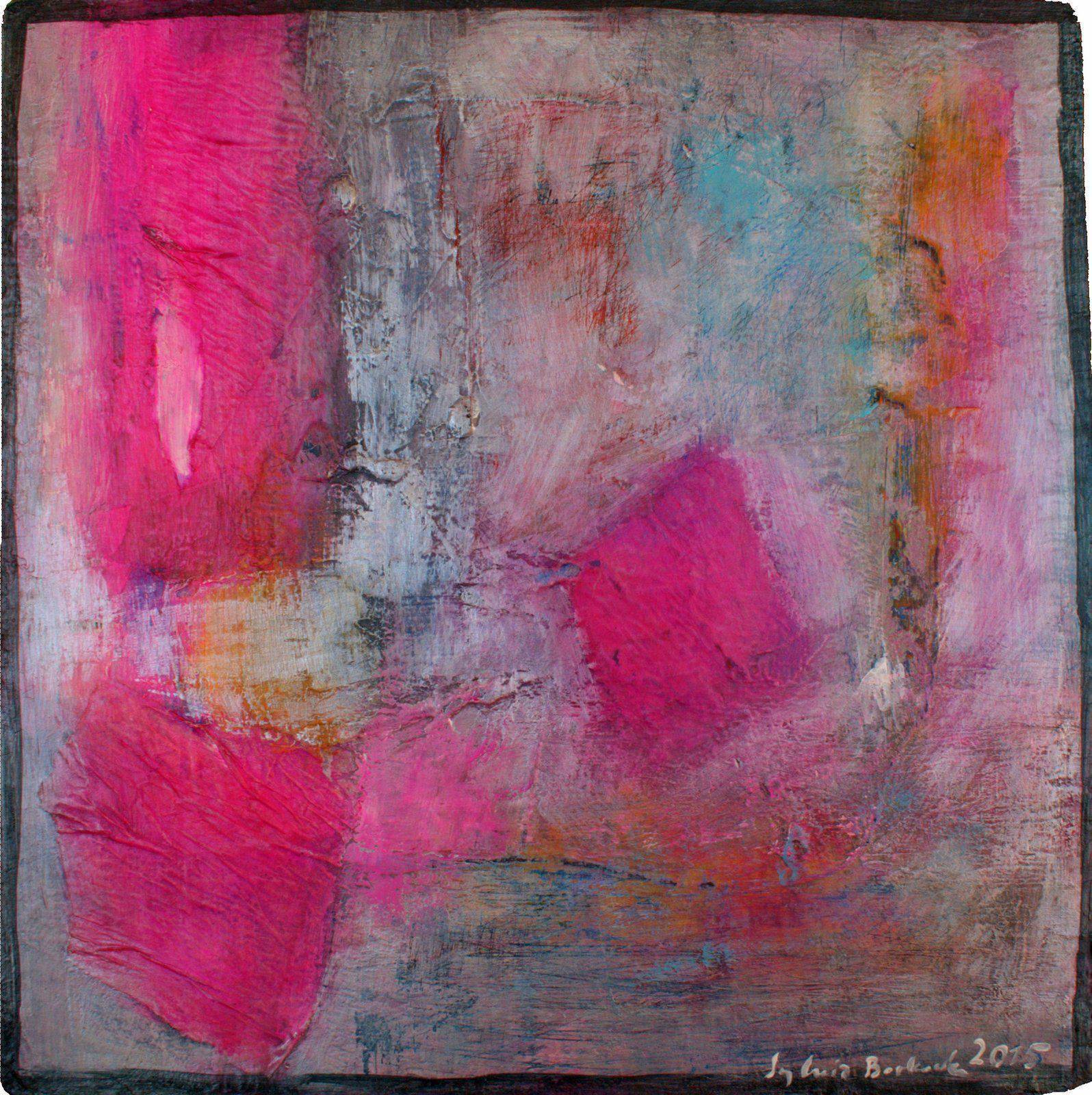 Obraz przyciąga wzrok intensywnymi odcieniami różu, które dominują nad delikatnymi szarościami i niebieskościami. Kolory przeplatają się, tworząc abstrakcyjną kompozycję pełną faktur. Na środku wyróżnia się większa, różowa plama, przyciągająca uwagę jak cukierek na ladzie. Kompozycja zdaje się być przypadkowa, a jednak chaotyczna na swój sposób. Atmosfera obrazu jest pełna energii, takiej trochę niespokojnej, ale i fascynującej. Technika przypomina impresję, gdzie pociągnięcia pędzla są śmiałe i widoczne. Wyobraź sobie, jak artysta kładzie kolejne warstwy farby, niemal jakby chciał opowiedzieć jakąś secret tale. Styl jest zdecydowanie ekspresjonistyczny, a faktura - niemal trójwymiarowa. Obraz może wywoływać różnorodne emocje, od zachwytu po pewną dezorientację. "Ale fajne kolory!" - mogłoby powiedzieć dziecko. Patrząc na ten obraz, można poczuć, jakby artysta próbował uchwycić moment oderwania od rzeczywistości, taki escape. Refleksyjna chwila, którą każdy interpretuje po swojemu, niczym w kalejdoskopie emocji. Przyciąga i intryguje, skłaniając do dłuższego zatrzymania się i przemyślenia.