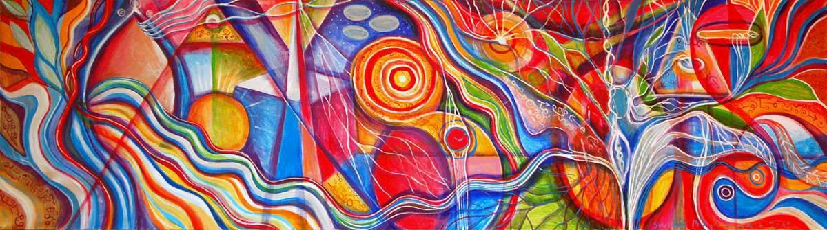 Ten obraz to prawdziwa eksplozja kolorów, jakby ktoś rozsypał konfetti po całym płótnie. Dominują tu intensywne czerwienie, żywe błękity i świeże zielenie, przeplatane żółtymi akcentami. Kompozycja jest pełna dynamiki i chaosu, ale takiego kontrolowanego. Kształty wirują i płyną, przypominając rzekę, która nie może się zdecydować, gdzie płynąć. Atmosfera obrazu przypomina dzień w parku rozrywki, pełen ekscytacji i energii. Artysta zastosował swobodny styl, który kojarzy się z abstrakcyjnym ekspresjonizmem, z wyraźnymi liniami i mocnym kontrastem. Patrząc na ten obraz, czuję się jak dziecko oglądające fajerwerki po raz pierwszy. It's exciting! Technika mieszania kolorów i przewijające się linie tworzą iluzję ruchu, jakby całość miała ożyć w każdej chwili. Emocje krążą wokół radości, ciekawości i lekkiego zamieszania. Można by powiedzieć: "Mamo, te kolory tańczą!" Obraz wywołuje wiele interpretacji; jedni zobaczą tu kosmiczny krajobraz, inni chaotyczne miasto pełne tajemnic. Niesamowity miks stylów i kolorów, który bawi i intryguje na każdym kroku.