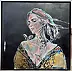 Na obrazie widzimy kobietę o zamkniętych oczach, otoczoną przez motyle unoszące się wokół jej delikatnie przechylonej głowy. Tło jest głęboko czarne, co sprawia, że krucha figura kobiety i jej eteryczne włosy zdają się niemalże świecić. Kolory są subtelne, dominują pastele z nutką złota, które dodaje elegancji. Nastrój emanuje spokojem i ulotnością, jakby czas stanął w miejscu. Artysta zastosował technikę, która łączy malarstwo z elementami kolażu. Trochę jakby ktoś naszkicował marzenie. Obraz daje uczucie lekkości i nostalgii. Wzbudza refleksje na temat przemijania i piękna chwil, które chwytamy, zanim się rozpłyną. Motyle symbolizują przemianę i kruchość życia. Look, one nawet przypominają dziecięce bajki! Dzieła takie jak to, z ich subtelnymi krawędziami i bogatymi teksturami, potrafią eksplorować głębiny naszej emocjonalnej percepcji. Patrząc na obraz, myślę sobie, że każdy może zobaczyć w nim coś swojego, jakby szeptał do nas swoje tajemnice.