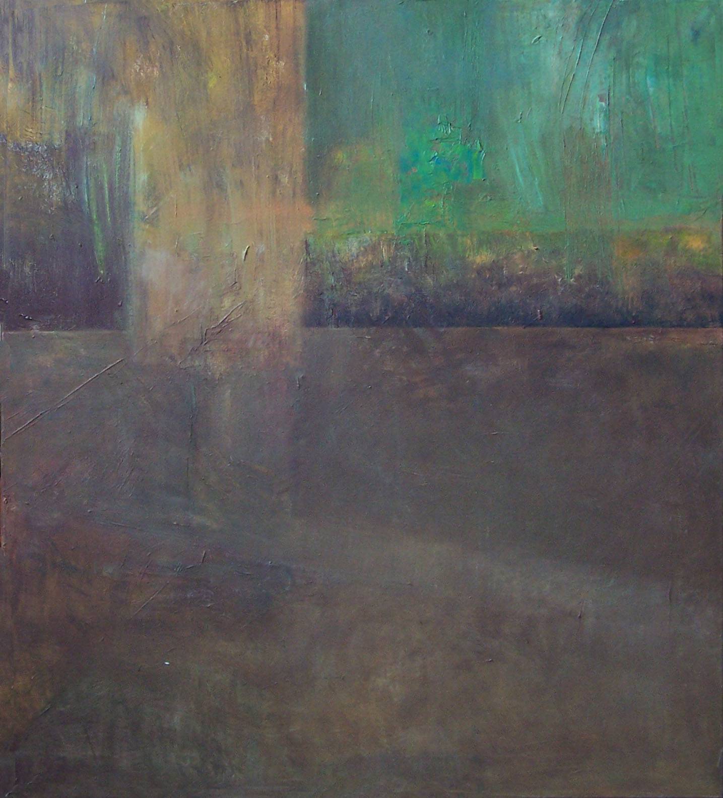 Na tym obrazie można dostrzec subtelne przeplatanie się kolorów. Dominuje zieleń i brąz, które tworzą tajemniczą atmosferę. Może to być las skąpany w mroku lub abstrakcyjna przestrzeń. Kształty są nieregularne, widać, że artysta eksperymentował z fakturą. Kompozycja jest zróżnicowana, z intensywnymi przejściami tonalnymi. Atmosfera obrazu jest spokojna, ale jednocześnie pełna niepokoju. Czy to chwilowy spokój przed burzą? Jest w niej coś melancholijnego. Wygląda jak sen lub dawno zapomniane wspomnienie. To jeden z tych artów, które przyciągają oko i nie pozwalają szybko się oderwać. Technika malarska to prawdopodobnie technika olejna, z wyraźnym ruchem pędzla dającym efekt głębi. Wrażenie jest mieszane, łącząc realizm z abstrakcją. Patrząc na to wszystko, przypomina się małe dziecko mówiące "Ooo, jaki ładny zielony!" Blisko mi do tego uczucia - prostego zachwytu nad kolorem. Este obraz jest pełen emocji. Może wzbudzać zarówno spokój, jak i tajemniczość. Kolorystyka i faktura zachęcają do refleksji. To jakby artysta zostawił miejsce na własne interpretacje odbiorcy, co czyni obraz jeszcze bardziej wyjątkowym.