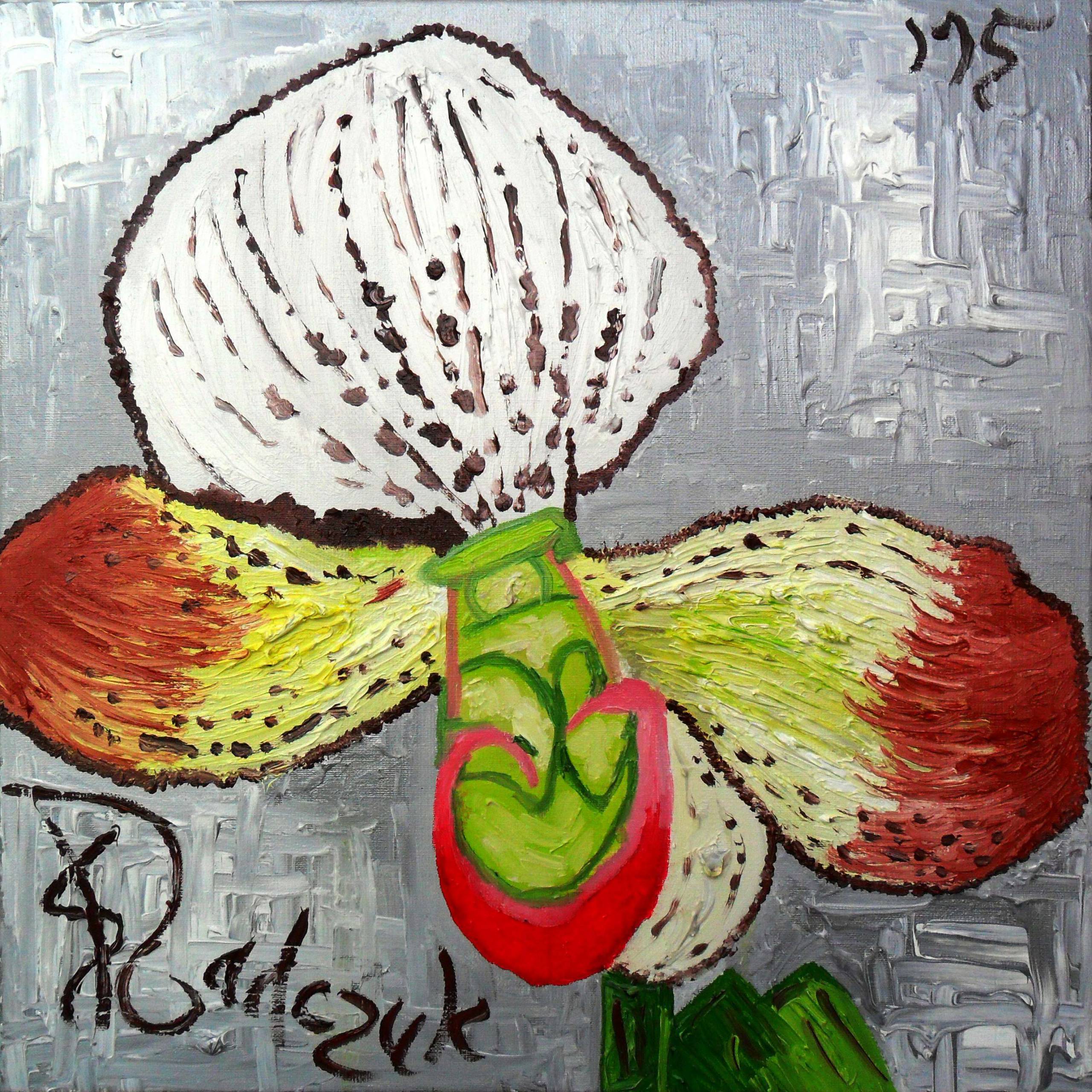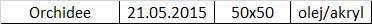 obraz sygnowany, ręcznie malowany na lnianym podobraziu naciągniętym na sosnowy blejtram & zabezpieczony damarowym werniksem Orchidee 21.05.2015 50x50 olej/akryl