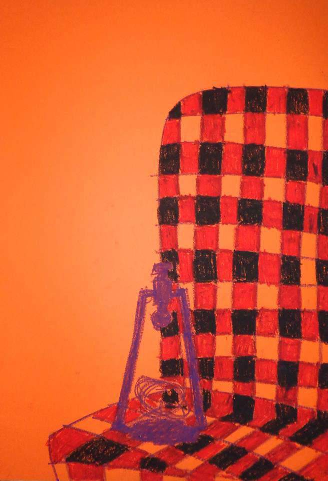 Obraz emanuje intensywnymi kolorami, które przykuwają wzrok. Dominują ciepłe odcienie pomarańczu, czerwieni oraz głęboki, kontrastujący czarny. Krzesło pokrywa dynamiczna kratka, tworząca rytmiczną kompozycję. Na siedzisku spoczywa tajemniczy przedmiot w kolorze fioletowym, który dodaje intrygi. To jak łamigłówka! Nastrój obrazu jest dość nostalgiczny, trochę jakby przypominał dziecięce wspomnienia. Styl artystyczny przypomina naivety art, z prostymi liniami i wyraźnym konturem. Może balansować granicą między rzeczywistością a snem. Artysta użył pastelu, dając teksturze miękkość i głębię, co sprawia, że obraz wydaje się niemal dotykalny. Można poczuć ciepło domowego spokoju, ale zarazem tajemnicze pytanie. Co tam jest? Obraz przywołuje wspomnienia dzieciństwa, prostote i piękno codzienności. Jednocześnie, w swojej prostocie, zmusza do refleksji, jak w angielskim "What if?". Patrząc na ten obraz, czuję jak czas się zatrzymuje, a świat wokół staje się mniej skomplikowany. Krzesło na obrazku jest jak z baśni, tak mógłby powiedzieć 7-latek. Czyż nie jest to właśnie piękne, jak sztuka może budzić w nas głęboko ukryte emocje i refleksje?