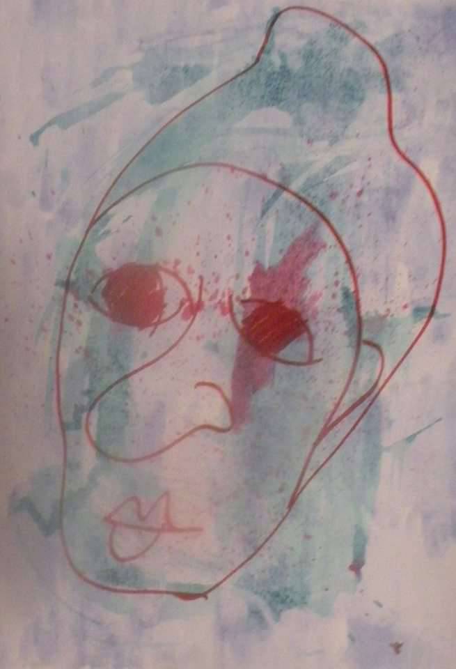 Obraz, na którym spojrzenie przyciąga chaotyczna, lecz zarazem ujmująca forma twarzy, zestawia ze sobą delikatne niebieskawe tło i wyraziste linie koloru czerwonego, tworząc przykuwający uwagę kontrast. Figurka twarzy przypomina dziecięce bazgroły, niemal jakby uchwycone na mlecznej powierzchni płótna. Widać tutaj artystyczną nonszalancję i minimalizm, które nadają pracy pewną lekkość, a zarazem tajemniczość. Atmosfera obrazu jest dość zagadkowa, może trochę niepokojąca, jakby ktoś próbował uchwycić ulotną myśl, która właśnie znika. Można by rzec, że w pewien sposób artysta bawi się emocjami widza. Styl opiera się na płynnych, szybkich pociągnięciach pióra czy pędzla, co wskazuje, że twórca ceni sobie spontaniczność i freedom. Patrząc na ten obraz, widz może odczuwać mieszankę rozbawienia i nostalgii, jakby wracał do czasów dzieciństwa. Pomimo swojej prostoty, kompozycja jest pełna głębi i niejednoznaczności. "Wygląda jak buzia z kreskówki", mogłoby powiedzieć dziecko spoglądając nań. Osobiście, na widok tego obrazu czuję jakąś dziwną tęsknotę za latami pełnymi beztroski. Na pewno pozostawia w głowie jakąś refleksję, a może nawet skłania do dalszego zgłębiania wewnętrznych myśli.