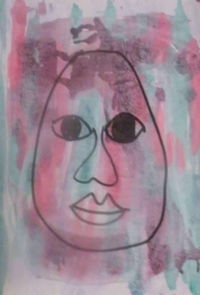 Obraz emanuje delikatnością i nieco hipnotyzującym spokojem. Wyrazista twarz umieszczona centralnie, nakreślona prostymi, grubymi liniami, ma niemal dziecięcy, naszkicowany styl. Kolory tła, mieszanka różu, mięty i szarości, przypominają akwarelowe plamy, które sprawiają wrażenie lekkiego ruchu. To jakby patrzeć przez zamglone szybę na coś niewyraźnego. Atmosfera przypomina sen, gdzie detale się rozmywają, a pozostają tylko emocje. Taka kolorystyka i prosta forma mogą wywoływać uczucia tęsknoty, refleksji, ale też spokoju. Artystyczny styl jest swobodny, niemal naiwny, co przywołuje na myśl dziecięce rysunki. Look at this! Tak mogłoby powiedzieć dziecko oglądające obraz. Może budzić różnorodne interpretacje, jakbyśmy patrzyli na siebie oczami dziecka. Obraz mógłby przypomnieć mi chwile beztroski z przeszłości, a użyte techniki zachęcają do zanurzenia się w tej abstrakcyjnej wizji. Eksperymentalny, lecz pełen emocji, zachęca do wielorakiego odbioru.