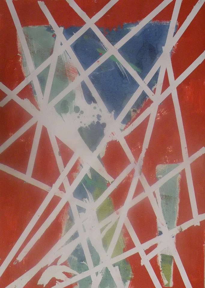Obraz przykuwa uwagę dynamiczną kompozycją i kontrastującymi kolorami. Dominują tu mocne czerwienie, przetykane błękitami i subtelnymi zielenie, wszystko przeszyte białymi, przecinającymi się pasami, tworzącymi sieć wierzchołków i krawędzi. Sposób, w jaki kolory się przenikają i mieszają, nadaje całości wrażenie głębi. Atmosfera tego dzieła jest nieco chaotyczna, jakby artysta próbował uchwycić moment zburzonego ładu. Wygląda to trochę jak plątanina linii stworzona przez dziecko, które odkrywa potęgę kredek po raz pierwszy. Technika użyta przez artystę przypomina action painting, gdzie spontaniczność odgrywa kluczową rolę. Co ciekawe, dłuższe spojrzenie na ten obraz budzi emocje - od początkowego niepokoju po fascynację. Czy te linie chcą nam coś powiedzieć, czy po prostu są? Dzieło to prowokuje do refleksji na temat ukrytego porządku w chaosie. Trochę jak puzzle, które trzeba samemu poukładać. "I think it's a spider web!" powiedziałoby dziecko z wypiekami na twarzy. W tym wszystkim jest też coś osobistego i bliskiego. Artysta zdaje się igrać z percepcją, angażując odbiorcę w grę pt. "Co widzisz?". Można poczuć się jak odkrywca, który przygląda się nowemu światu, w którym reguły nie są z góry ustalone. To czyni obraz intrygującym, nawet jeśli chwilami wydaje się zbyt zagadkowy.
