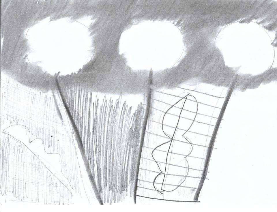 Na obrazie widzimy niezwykle dynamiczną kompozycję opartą na ołówkowych szkicach. To jakby wielkie dmuchawce unoszące się w powietrzu, złożone z trzech okrągłych, białych form. Tło zdaje się pochmurne, mroczne, jakby burza miała zaraz nadejść. Kreski są zamaszyste i chaotyczne, co dodaje energii całej scenie. Artysta użył ołówka, tworząc surowy, niemal pierwotny efekt. Przejścia tonalne między jasnymi i ciemnymi partiami są płynne, co nadaje obrazowi nutkę emocjonalnej tajemnicy. Czuję się jak w bajce, gdzie wszystko może się wydarzyć. Pomimo pozornej prostoty, obraz emanuje silnymi emocjami. Przywołuje refleksję o ulotności chwili, jak te dmuchawce, które nagle mogą zniknąć. Każdy może tu zobaczyć coś innego: może to pamięć z dzieciństwa albo metafora ulotnego marzenia? Rysunki wyglądają, jakby były robione szybko, co dodaje uczucia spontaniczności i wolności. To takie „dreamy” uczucie, kiedy patrzysz na te kwiaty. Wow, ale duże piłki! - powiedziałby pewnie siedmiolatek. Ten obraz jest dla mnie jak szept natury, delikatny, lecz nieuchronny. Fascynuje mnie sposób, w jaki prosta kreska może opowiadać tak złożoną historię. Opowiada o emocjach i ulotności, podobnie jak niektóre nasze marzenia.